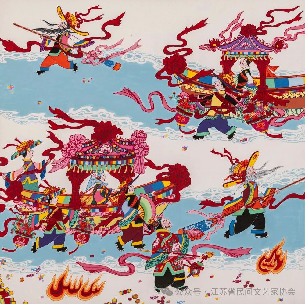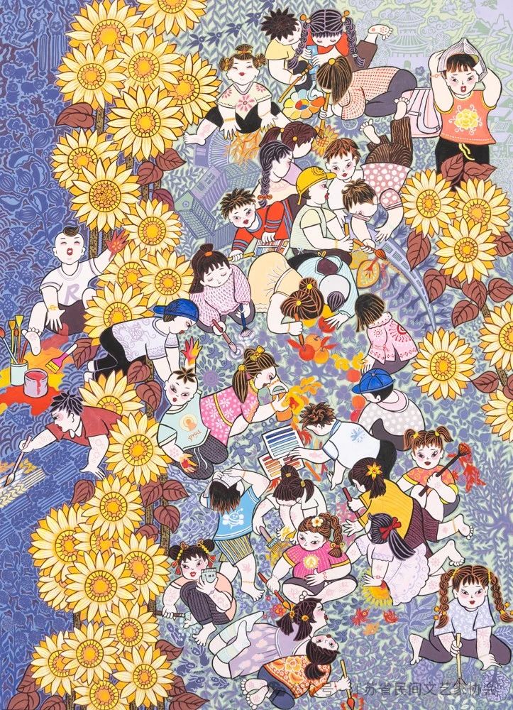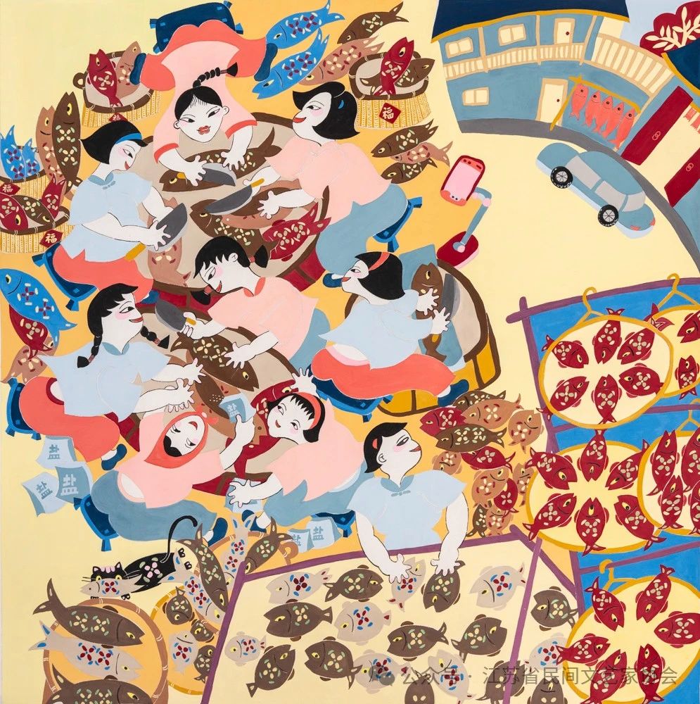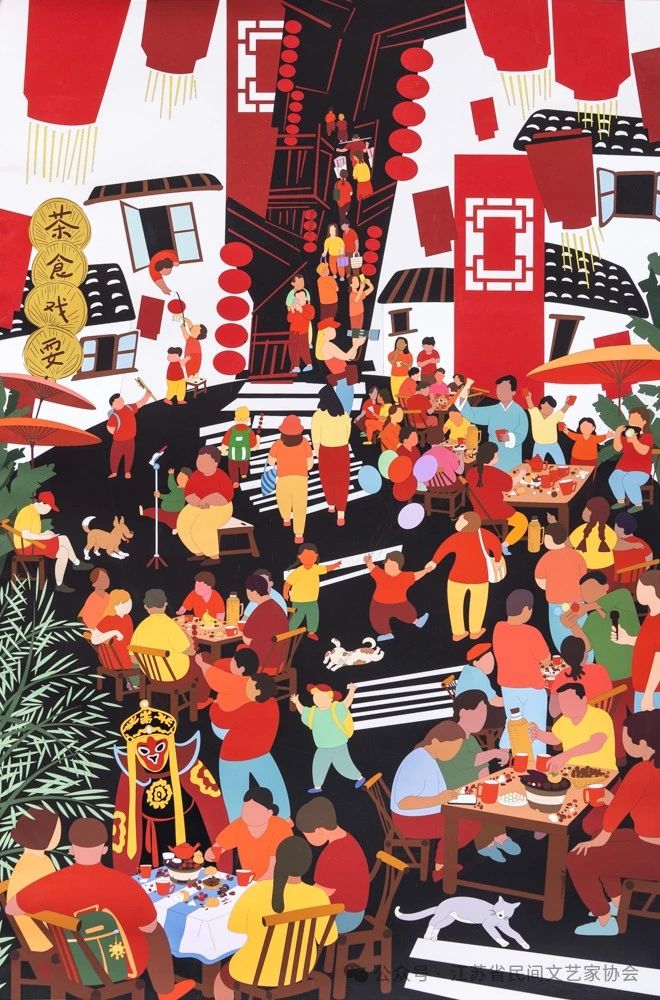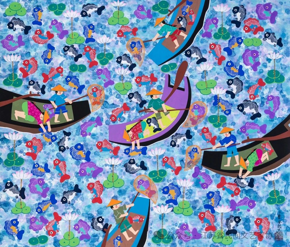 编者按:8月20日,由中国民间文艺家协会、中共江苏省委宣传部、江苏省农业农村厅、江苏省文学艺术界联合会主办,江苏省民间文艺家协会、江苏省现代美术馆承办的“大地流彩——2024中国(南京)农民画优秀作品双年展”在江苏省现代美术馆开幕。本次展览共展出150件优秀作品,其中收藏作品10件。这些作品色彩艳丽却又彰显着率真质朴的气质,多角度反映了农村巨变和民俗民风,描绘了新时代农村精神文化风貌。现继续将入展作品刊登,以飨读者。