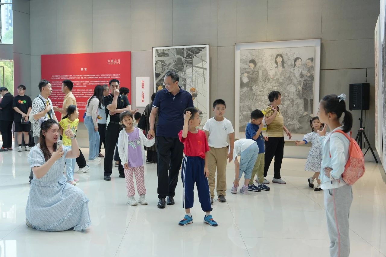 刘旭东代表省文联向光临的嘉宾表示欢迎,祝贺“大道之行”美术展开幕。他说,展览名为“大道之行”,可以有两种理解:一是作品反映了中华人民共和国成立以来,特别是新时代以来的历史性成就,是对中国特色社会主义康庄大道的歌颂和赞美。二是作为一次主题美术创作,充分体现了“笔墨当随时代,艺术要为人民”的现代艺术传统,这说明我们的美术家走的是艺术创作的正道大道,理应充分肯定。入选作品充分体现了我省国画、油画创作的实力和水平,这是一次对标国家标准的省级优秀大展。一是题材十分丰富,既有传统题材的挖掘,又有对生活和艺术的新发现、新拓展。二是时代气息浓郁,与时代同频共振,与人民同心共情,抓住了许多新时代才有的题材和主题。三是主题鲜明,各展所长,给人一种积极向上的力量感。四是技法娴熟,风格多元,笔墨洒脱,用色瑰丽。他期望,优秀的画家在解决了技法语言形式即“怎么画”的问题之后,还要加强全方位的学习,对政治、经济、文化、社会、生态等各方面的信息都要主动吸收思考,更好地找到“画什么”的方法,让江苏主题美术创作水平更上层楼。
