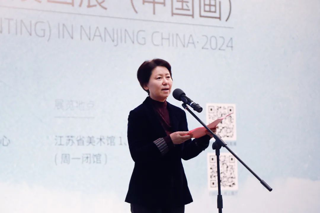 徐宁代表中共江苏省委宣传部向展览的开幕表示热烈祝贺,向长期以来关心支持江苏美术事业发展的社会各界人士表示感谢。她指出,中国百家金陵画展秉持新金陵画派的现实主义创作精神,在20年的深耕与探索中,先后推出了众多技艺精湛的美术精品和思想精深的理论文章,发掘了一批风格流派各有所长的美术人才,有效推进了中国绘画对当代现实社会的描摹、对当代审美经验的表达、对当代艺术语言的探索,为美术事业的发展作出了积极贡献。希望广大艺术工作者以此次展览为契机,深入学习贯彻党的二十届三中全会精神,学习践行习近平文化思想,自觉扛起新的文化使命,以大美之艺绘传世之作,推动传统美学与时代精神相融合,表达时代内涵,引领时代风气,为深入推进文化强省建设、谱写“强富美高”新江苏现代化建设新篇章贡献力量。