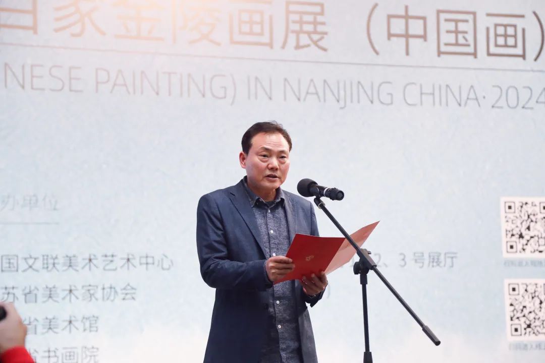 陆庆龙在致辞中介绍了中国百家金陵画展相关情况,指出本次参展作品,都是艺术家们精心绘制的精品佳作,是时代精神的生动写照,体现了传统技法与现代理念的巧妙融合,为群众呈现了一场视觉与心灵的双重盛宴。希望中国百家金陵画展的举办能够继续秉持初心,笃力前行,进一步激发广大美术工作者的创作热情,创作出更多体现中国精神、勇担时代使命的精品力作。