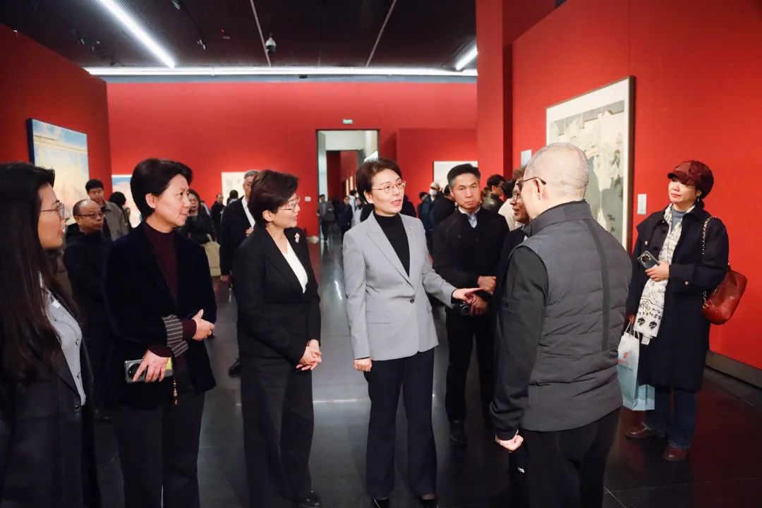 省委常委、省委宣传部部长徐缨出席,省人大常委会原副主任、省文联名誉主席王湛,省政协原副主席冯健亲,省人大教育科学文化卫生委员会主任委员陆永泉,省政协文化文史和学习委员会分党组书记邢光龙,省委宣传部副部长徐宁,省文联主席章剑华,省文联党组书记、副主席、书记处第一书记常胜梅,省文旅厅二级巡视员、省国画院党总支书记孙士泽,省文联党组成员、副主席、书记处书记刘轩明,省文联党组成员、书记处书记何超,省文联党组成员、副主席、书记处书记黄俊,省文联二级巡视员韩军,省文联副主席、省美协主席周京新,省文旅厅原巡视员、中国国家画院院务委员赵绪成,中国美协副主席、省美协副主席陆庆龙,中国文联美术艺术中心展览处副处长孙宁等出席开幕式。