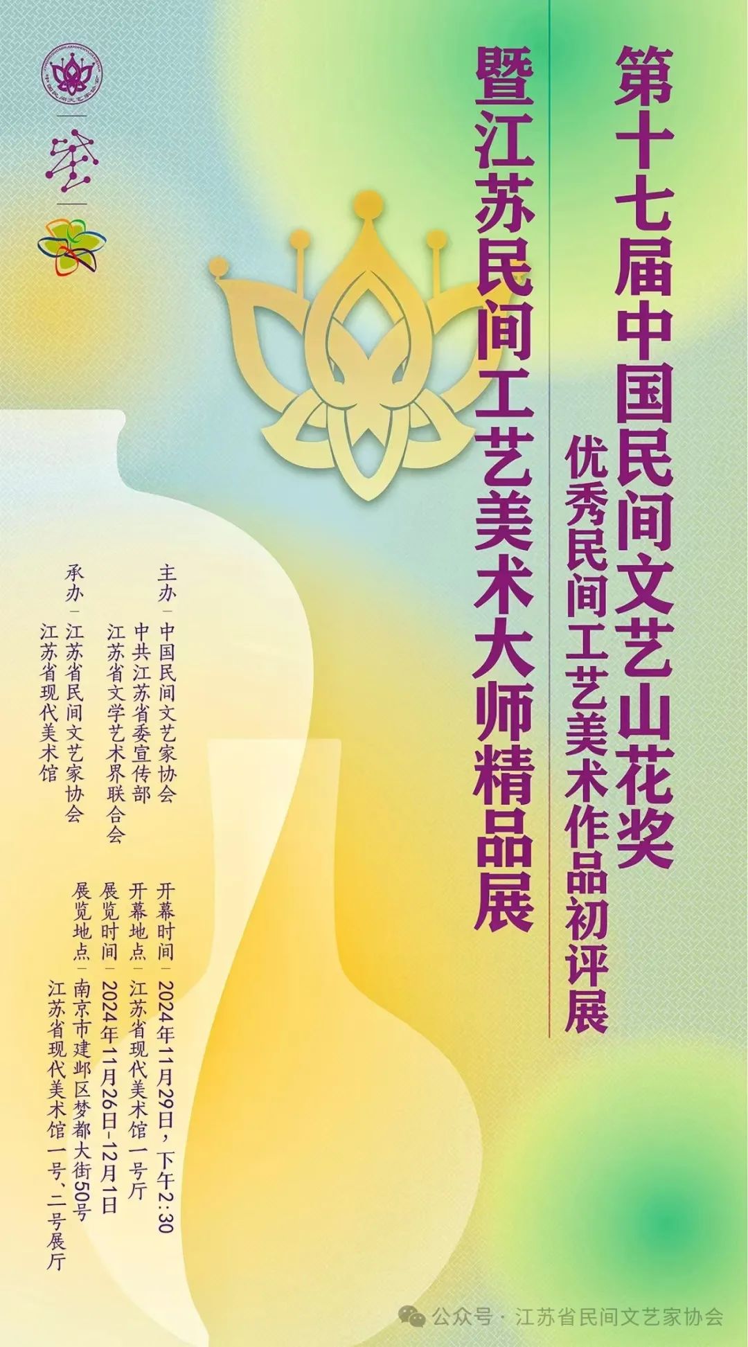 展讯丨第十七届中国民间文艺山花奖优秀民间工艺美术作品初评展暨江苏民间工艺美术大师精品展即将开展
