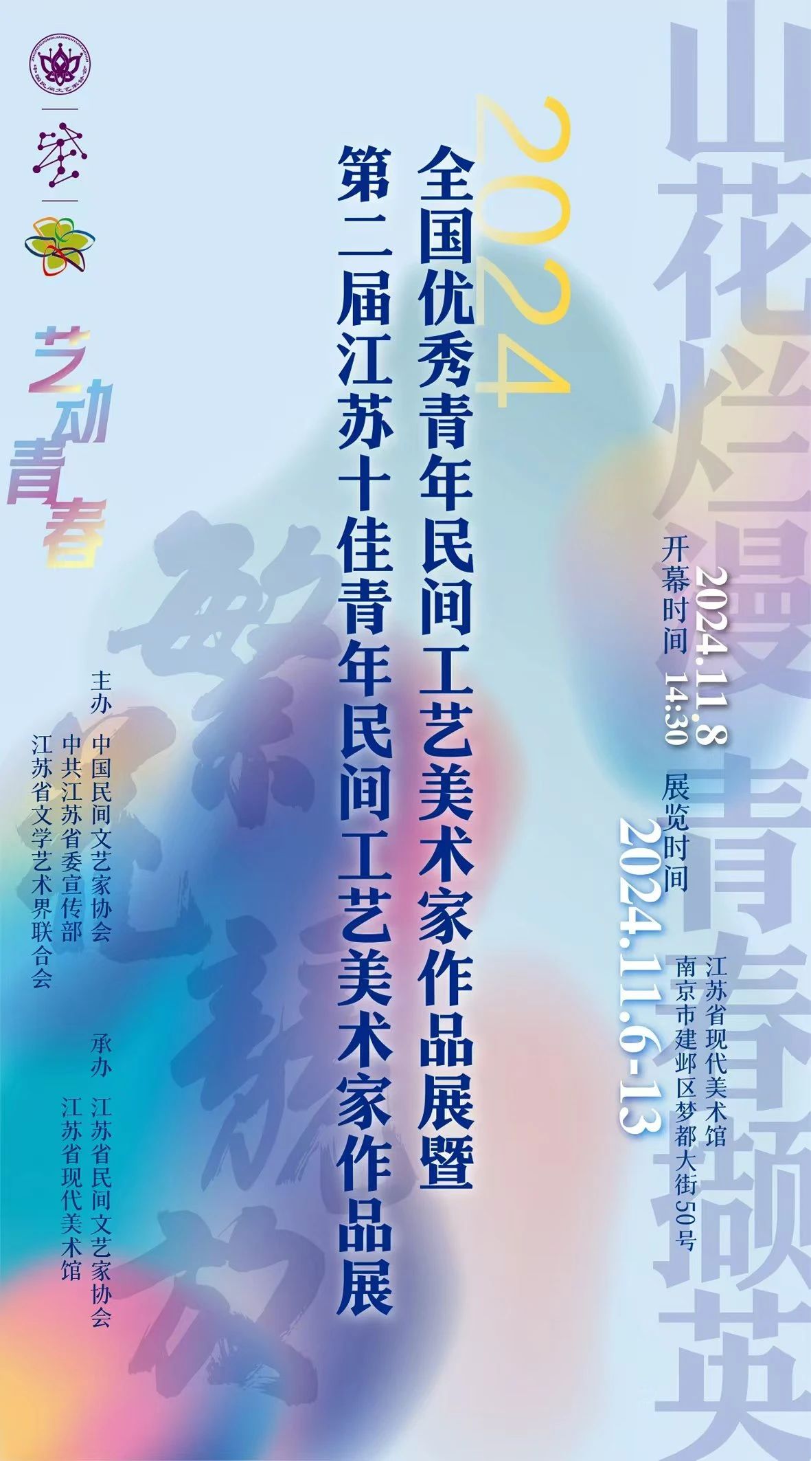 青年强,则国家强。千百年来,青春的力量,青春的涌动,青春的创造,始终是推动中华民族勇毅前行、屹立于世界之林的磅礴力量,新时代更为青年提供了施展才华的广阔舞台和实现梦想的机遇。为深入贯彻落实党的二十届三中全会精神和习近平文化思想,坚持把“做人的工作”和“推进文艺创作”有机结合起来,“山花烂漫 青春撷英 ”2024年全国优秀青年民间工艺美术家作品展暨第二届江苏十佳青年民间工艺美术家作品展如期而至。