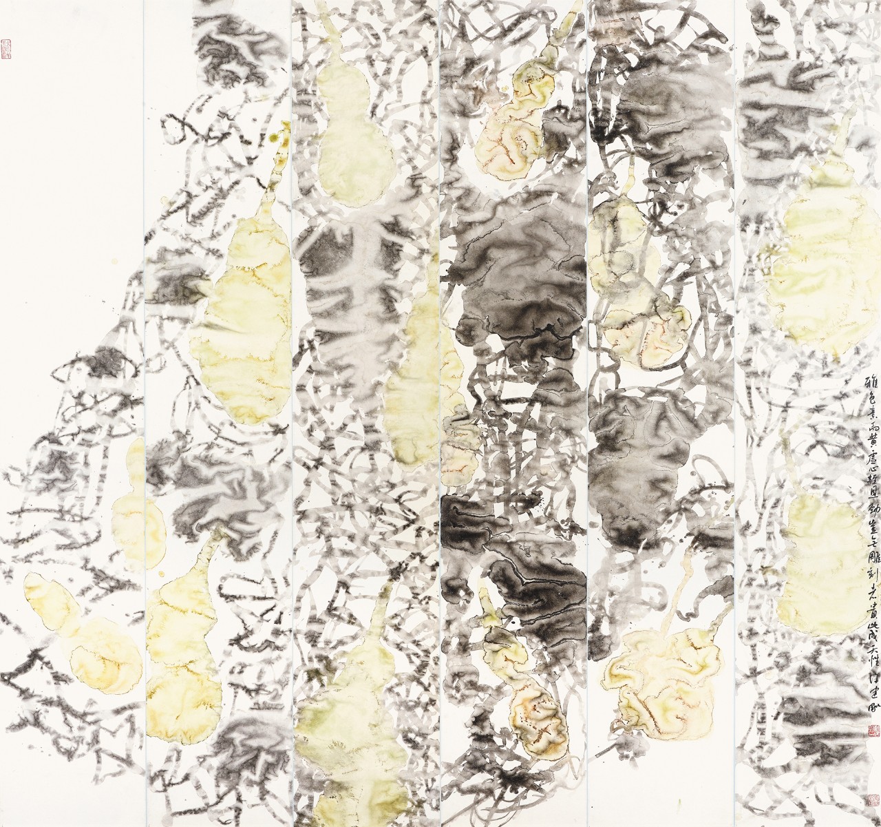 秋日,一片丰收的景象,美丽的农村庭院中悬挂着成熟的葫芦。江南农村,好风景与新经济、新农村是完美融合的。我热爱生活,热爱生命,喜欢一切美好的事物。艺术元素在心里积累,当它们积累到一定的程度时,就会有所感悟,用笔时就不自觉的有了一种笔墨的晕染。“计白当黑”“疏可走马,密不透风”的构图,让笔墨晕染间淡淡的乡村泥土的清香,投射出江南农村淳朴怡静的美好。“雅色素而黄,虚心轻而劲。岂无雕刻者,贵此成天性。”葫芦素来有福禄的寓意,象征农村生活的各个方面都朝着美好的方向发展,于是就有了这幅《东园偶记》。