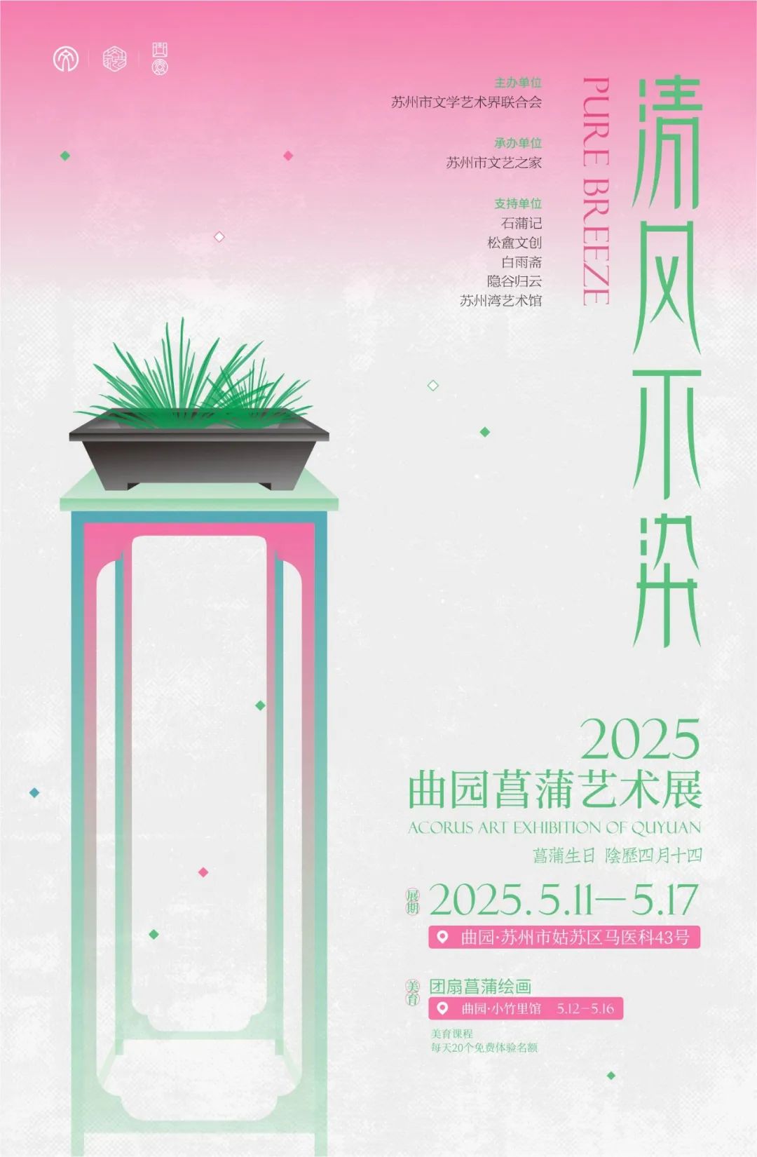今时今日,曲园菖蒲已从文人雅趣升华为城市文化名片。本次展览展出虎须、金钱、石菖蒲、黄金姬、极姬、有栖川等品类,同期将举办团扇菖蒲绘画美育体验活动,愿此展以菖蒲为桥,连接古今,让每一位观者于绿意幽香中,触摸江南文脉的温度,共守那份“不染尘埃”的初心。