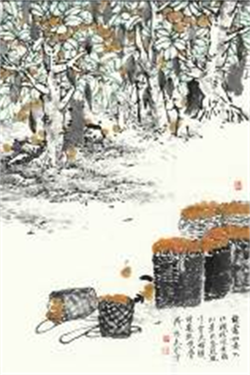 陈危冰作为生活在现代城市的画家,为什么对“田园”题材情有独钟?大概归因于画家儿时曾在江南山村水乡生活过一段时间,那种恬静淳朴、贴近自然的田园生活形成了他一生眷恋田园的情结。今天,苏州粉墙黛瓦的古城园林遗址固然可以入画,但毕竟不如太湖之滨鱼米之乡田园的“天开图画”广阔丰富;苏州高楼林立的新兴工业园区虽然开辟了金鸡湖等景点,但也不如真正的田园景色更令人感到亲切自然。陈危冰创作田园山水画的初衷,是基于他对现代工业社会与传统农耕文明之间的矛盾冲突的反思和关注,试图在已经衰微或消失的田园生活景象中安顿现代人无处安放的乡愁,寄托现代人回归自然的梦想。中国先秦时代老庄哲学的根本宗旨“道法自然”与18世纪法国启蒙思想家卢梭倡导的“回归自然”,虽属于异质文化观念,但具有精神契合的地方。老庄哲学的“道法自然”与卢梭的“回归自然”的“自然”(nature)都不仅是指自然界,而且是指自然界与人的纯真本性。“道法自然”是说宇宙的普遍规律“道”应该效法、顺应而不违背“自然”亦即自然界与人的本性。老庄哲学的人生理想是追求人与自然的融合。人与自然的融合不仅意味着人与自然界的和谐,更意味着人的朴素纯真的自然本性的回归,即“复归于朴”。中国传统艺术的审美理想崇尚返璞归真,意即屏除外表的浮华装饰,复归本真的质朴状态,兼有回归人的自然本性与回归宇宙的自然本质的双重涵义——这才是终极意义的回归自然。在这种意义上,保留在现代人记忆或想象中的质朴纯真的田园,已成为返璞归真的象征符号、回归自然的精神家园。正如陈危冰所说:“田园山水而今已经成为我的精神家园。”范成大的组诗《四时田园杂兴》虽然时隔八百多年,仍然激起了当代画家的情感共鸣。陈危冰的田园山水画包括《四时田园杂兴》系列,并不是现实田园的机械复制,也不是古人诗意的简单图解,而是回归自然的精神家园、画家性灵的自我抒发。