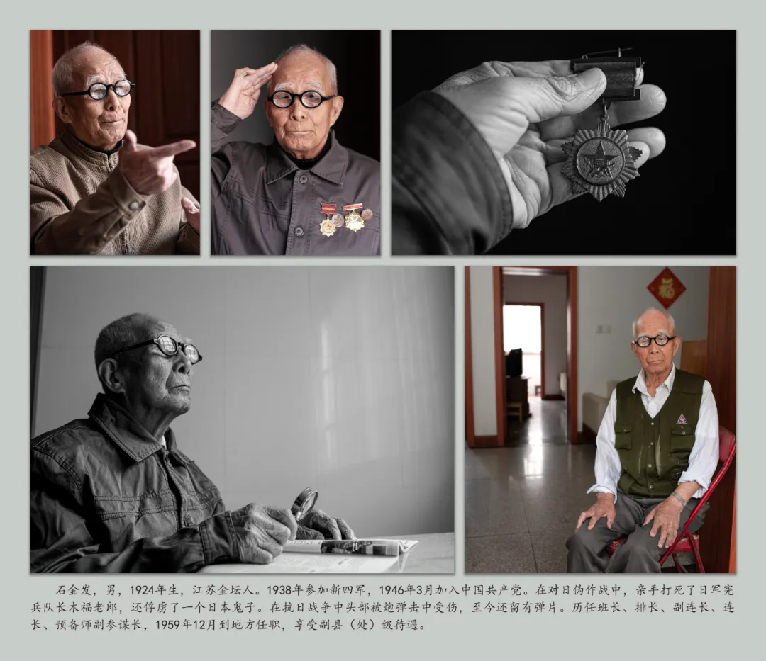 以王玉华为代表的摄影团队,从2013年底开始关注他们身边的抗战老兵。在阅读了相当数量的史料,做了大量细致深入的调查研究基础上,他们用摄影为家乡土地上的每一位健在的抗战老兵做了一份珍贵的视觉文献档案。《丰碑》是王玉华继2015年出版的《抗战老兵——王玉华摄影艺术作品集》之后,持续深耕十年,精心打磨的又一部为抗战存史,为抗战老兵立传的摄影作品集。和第一部摄影作品集单独将老兵们的特写集中展示所不同的是,王玉华团队的二度创作采纳了以文献摄影的方法予以再现这段历史,再现那些可爱可敬的抗战老兵的辉煌事迹。老兵们的生活状态,他们与家人,与社会的联系,他们在战后数十年里的经历和遭遇,他们的所思所感,成为王玉华二度创作的重要一翼。抗战老兵从高度凝练的肖像,到细节化,生动性更为丰富、更为强烈的形象展示,其真实感和亲近感也随之加深。至此,抗战老兵影像的呈现获得了集体型人格与个体型人格的重合,老兵形象借此实现了立体再造。