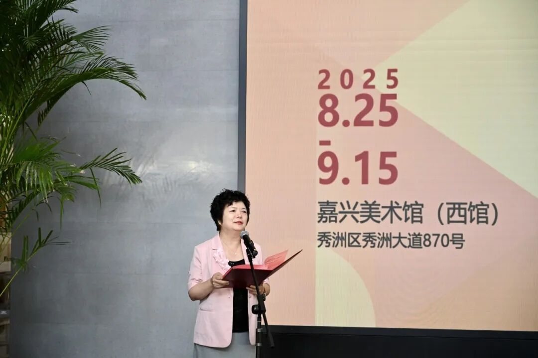 ▲嘉兴市文联二级调研员陈天英主持开幕式