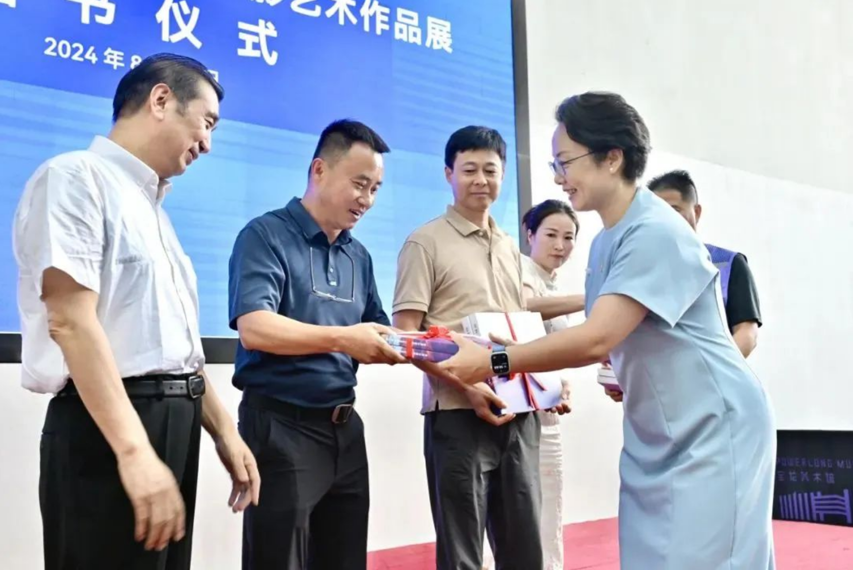 闵行区摄影家协会主席张帆向金华市摄影家协会主席洪兵、淮安市摄影家协会主席曹政、黄山市摄影家协会副主席何泰松赠送了《2024追梦-魅力闵行摄影作品展》画册,以此作为友好合作的见证。