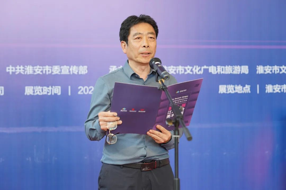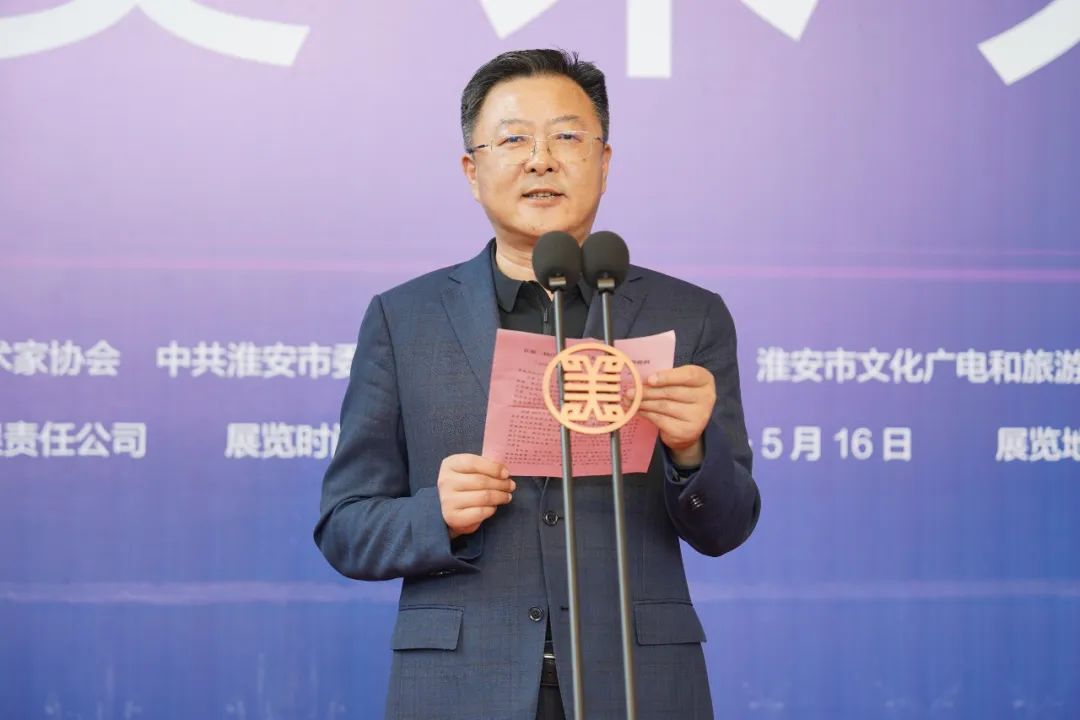 李森在讲话中表示,多年来,淮安市委、市政府将美术事业视为文化强市的关键,全力打造淮安美术品牌,淮安美术人才青蓝相继,展览场馆提升完善,文化生态日益优化。第二届江苏综合美术大展呈现种类多、外省作品占比高两大特点,是综合美术创作成果的盛会,更是一次探索淮安美术事业与会展产业新方向的旅程。期愿省文联、省美协推动优质文化资源下沉,让淮安共享艺术盛宴;期望淮安美术馆提升办展水平,擦亮“江苏综合美术大展”品牌;期待淮安美术界加强学习借鉴,讲好淮安故事;期盼远方艺术家常来淮安,感受美意,汲取灵感。