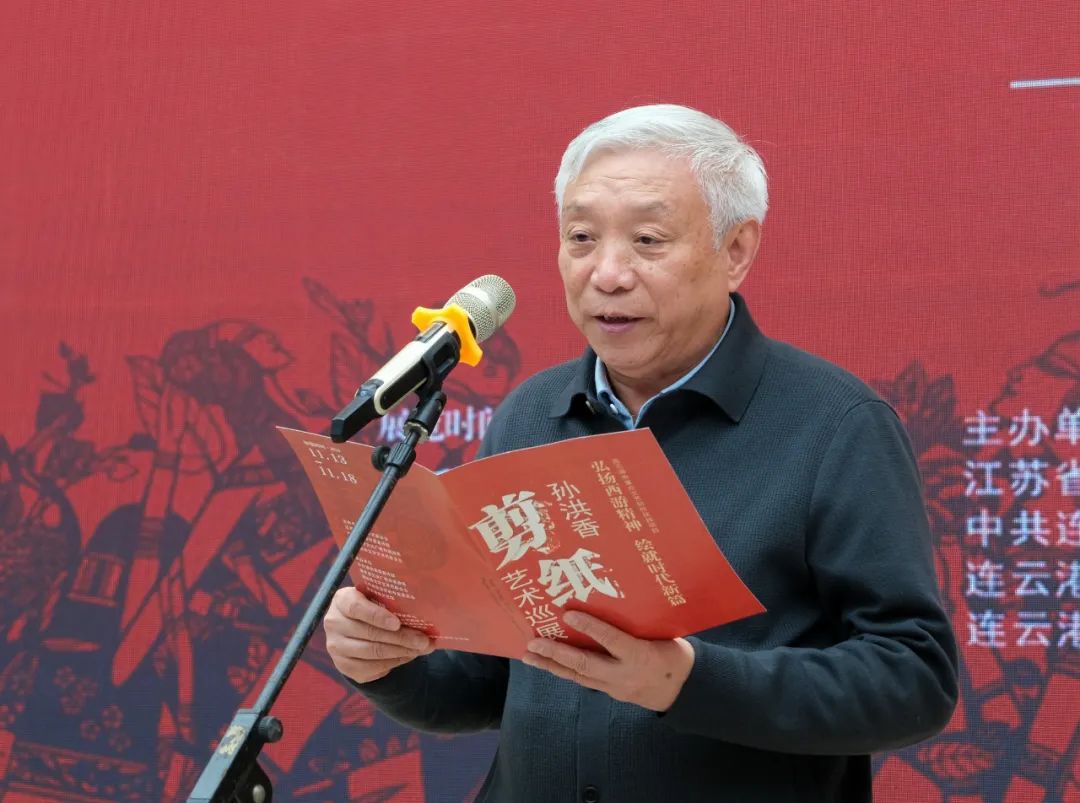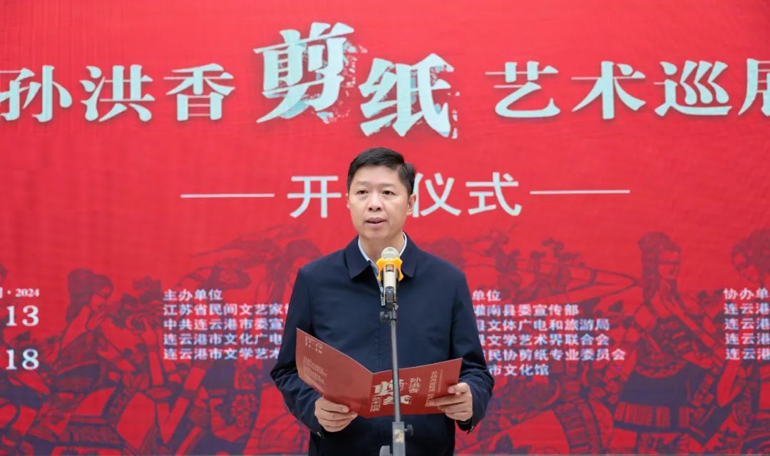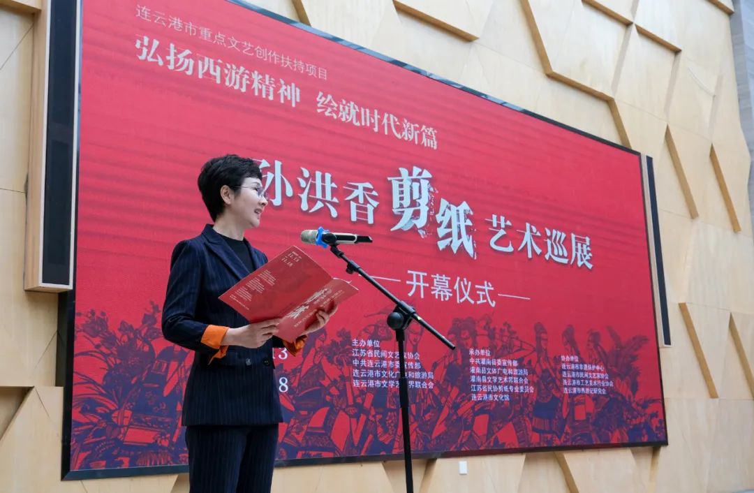 11月13日上午,“弘扬西游精神 绘就时代新篇”——孙洪香剪纸艺术巡展开幕式在市文化馆举办。该活动由江苏省民间文艺家协会、市委宣传部、市文广旅局、市文联共同主办。市委常委、市委宣传部部长朱兴波出席活动并讲话,省文联副主席王咏梅、省民协副主席殷召义、省民协剪纸委员会主任杨兆群,各主办单位相关负责同志及文艺工作者代表共200余人参加活动。
