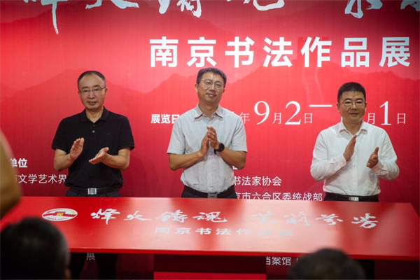 南京市文联党组成员、副主席李志平,南京市文联副主席、市书法家协会主席谢少承,六合区委常委、统战部部长吕明亮为展览揭幕