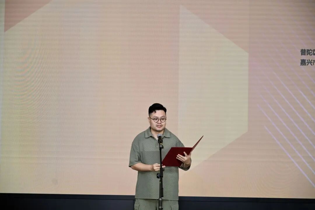 ▲嘉兴市文联二级调研员陈天英主持开幕式