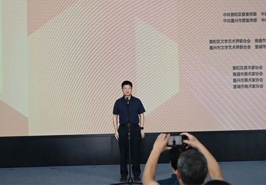 嘉兴市有关领导,上海市普陀区、南通市、嘉兴市、宣城市文联领导,四地书协、美协负责人和作者代表们齐聚一堂,共同见证这场跨越长三角的艺术盛会启幕。