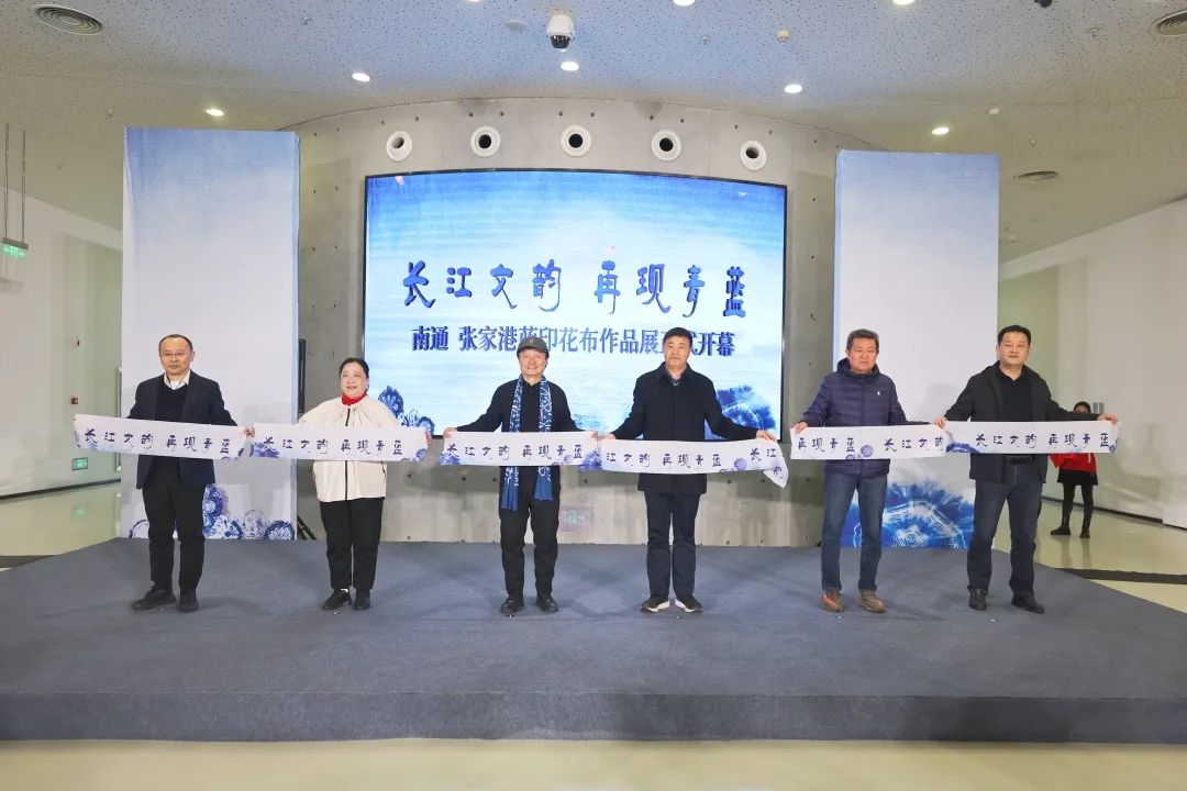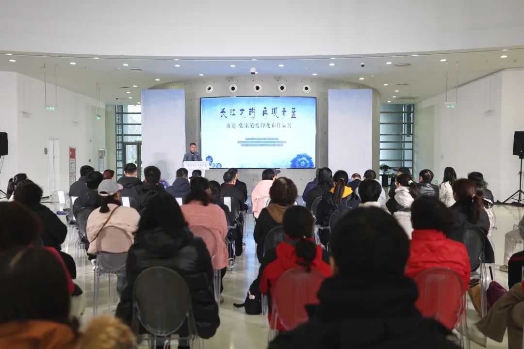 3月15上午,“长江文韵 再现青蓝”南通、张家港蓝印花布作品展在保税区金港文化中心美术馆开幕。