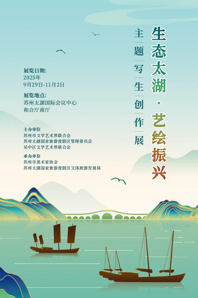 为深入贯彻党的二十大和二十届二中、三中全会精神,全面践行习近平文化思想,深入学习贯彻习近平生态文明思想,坚持出成果和出人才相结合、抓作品和抓环境相贯通,以文艺赋美乡村振兴,推动优质文艺资源直达基层,苏州市文学艺术界联合会、苏州太湖国家旅游度假区管理委员会、吴中区文学艺术界联合会主办 “生态太湖·艺绘振兴”主题写生创作展。本次展览由苏州市美术家协会、苏州太湖国家旅游度假区文体旅游发展局承办,于2025年9月在苏州太湖国际会议中心拉开帷幕。