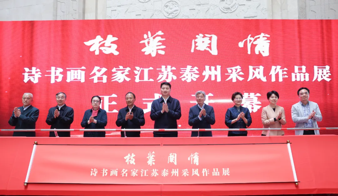 4月6日,“枝叶关情”诗书画名家江苏泰州采风作品展在泰州市博物馆盛大启幕。省委常委、省委宣传部部长徐缨观看作品展。中华诗词学会会长周文彰,中国美协主席、中央美院教授范迪安,中国书协主席、省文联副主席、省书协主席孙晓云,泰州市委书记姜冬冬在开幕式上致辞,并与中国出版协会副理事长、中国外文局原副局长陆彩荣,省委宣传部副部长徐宁,省文联党组书记、副主席、书记处第一书记常胜梅,泰州市人大常委会主任张余松,全国劳动模范、全国五一劳动奖章获得者何健忠共同为本次作品展启幕。