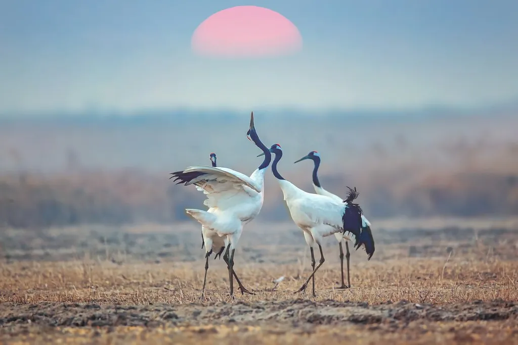《鹤戏残阳》邵 锋 摄