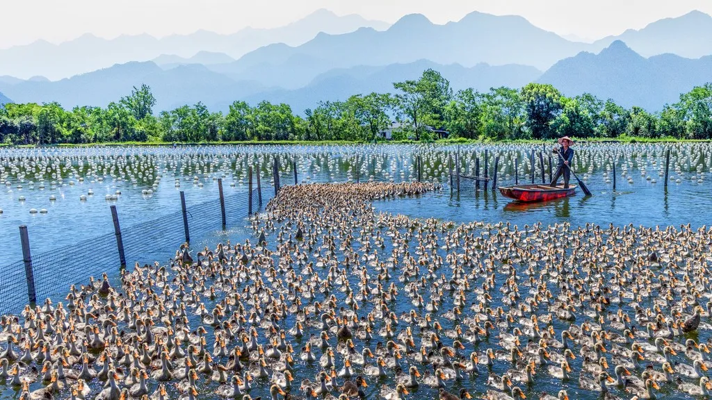 《群鸭嬉水》戴友竹 摄