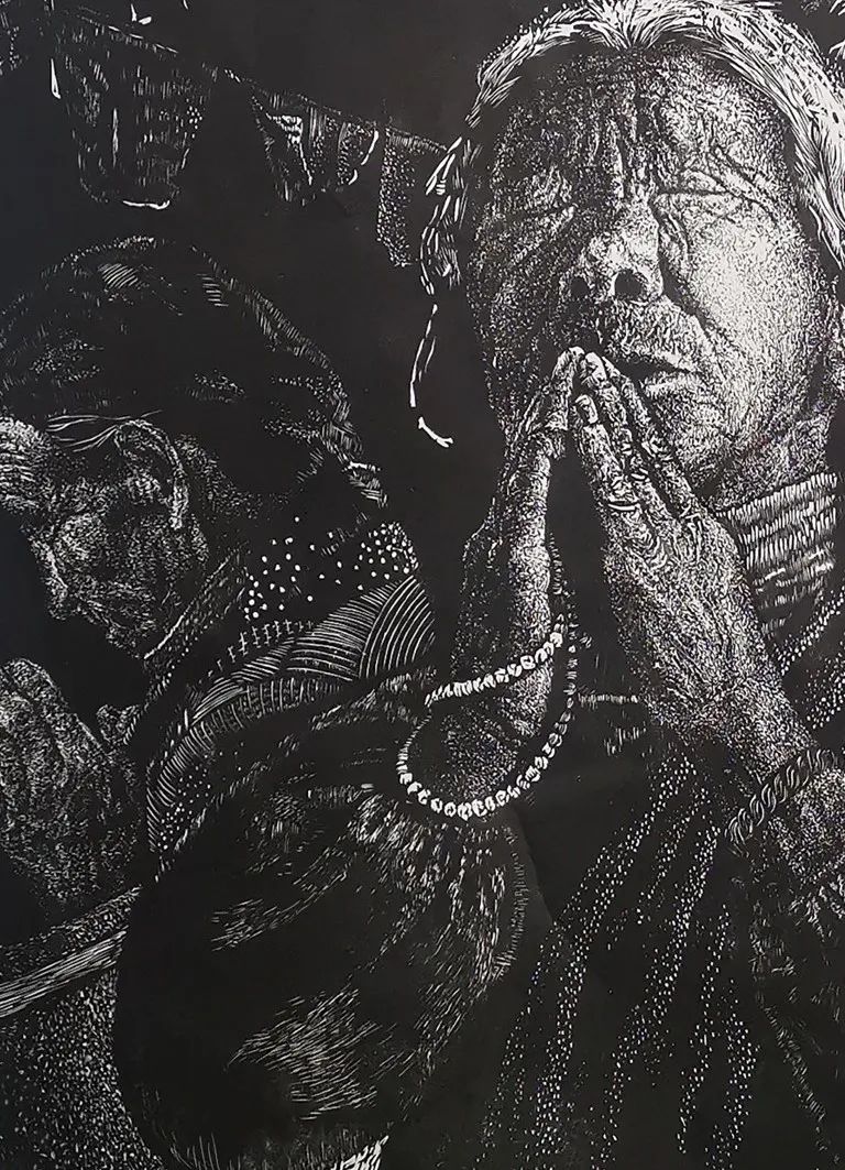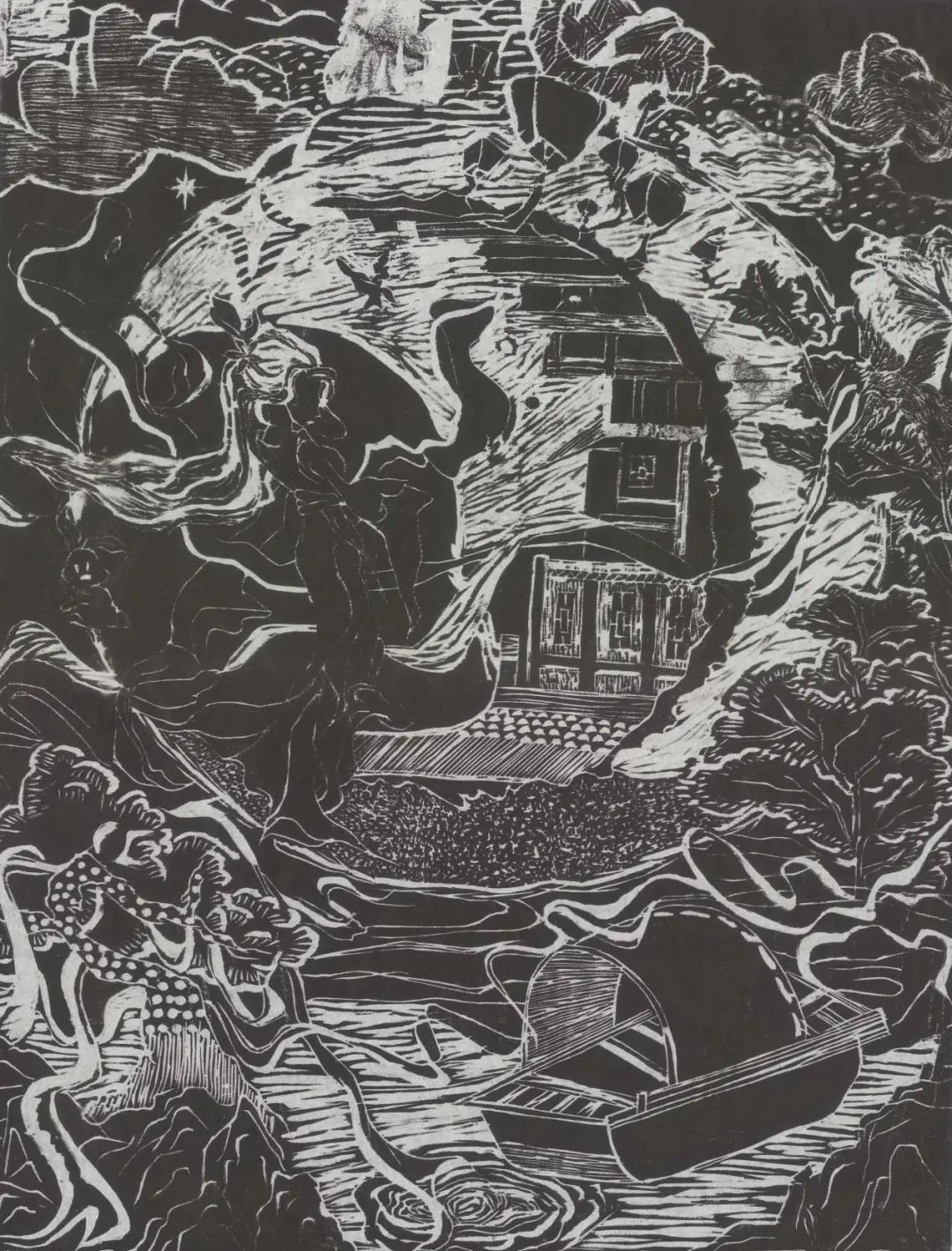 《嫦娥祈月》 黑白木刻 曹可昕 2024