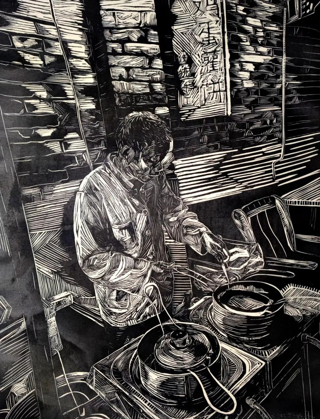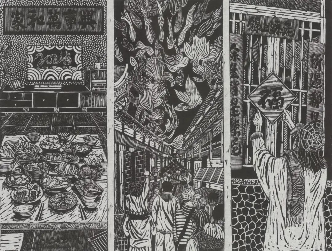 《小时候的春节》 水印木刻 闫莉炫 2024