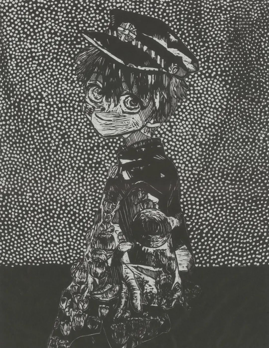 《童梦猫影》黑白木刻 戴欣雨 2024