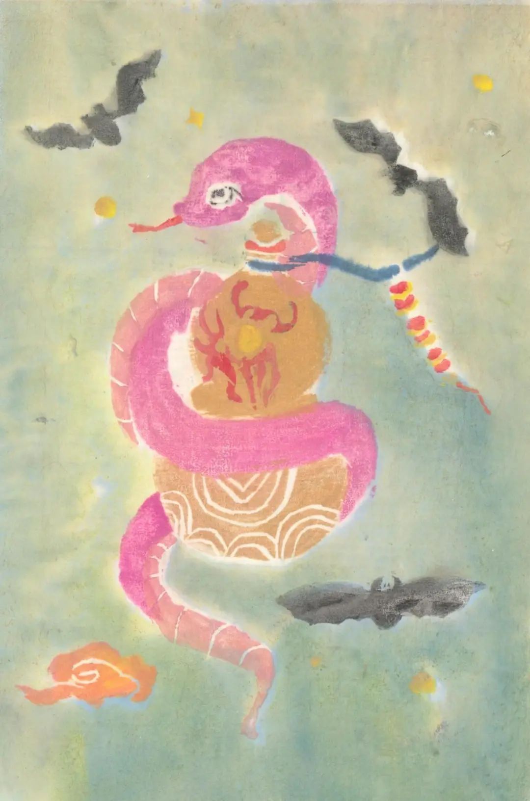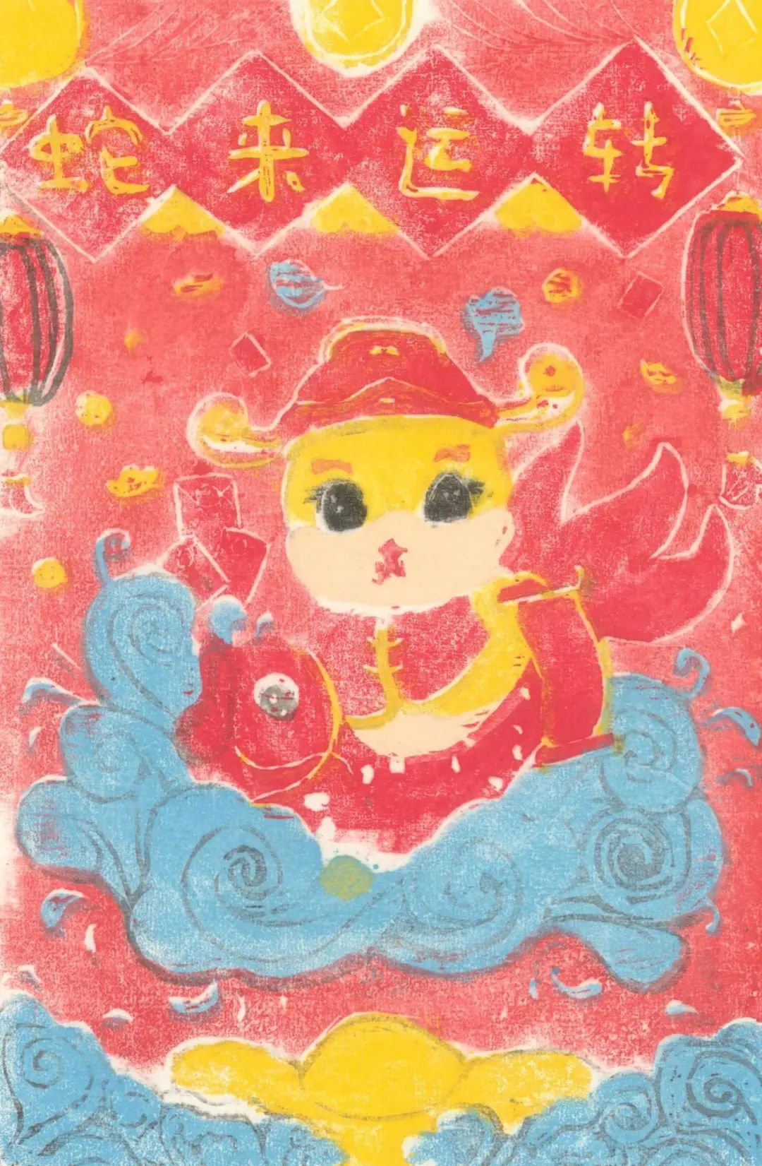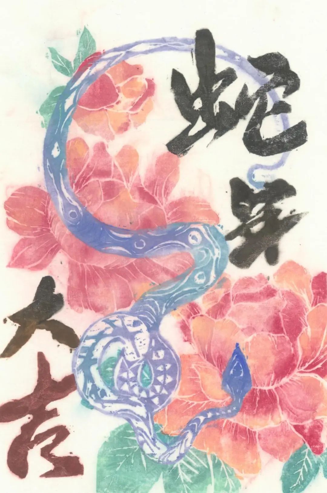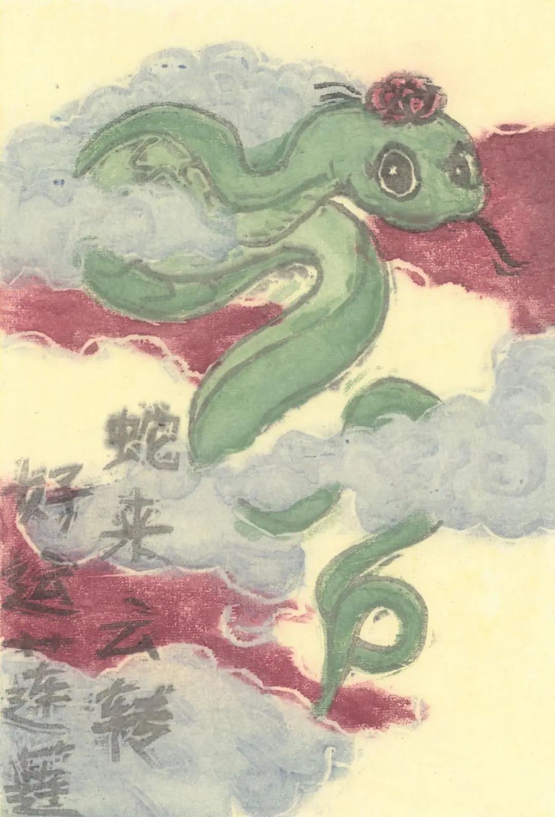 《 画蛇添福迎万“南”》水印木刻 马紫萱 2024
