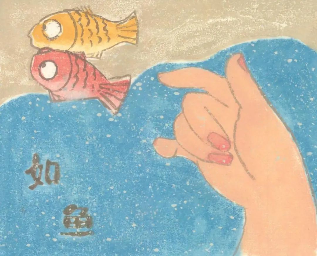 《如鱼得水》 水印木刻 陈彦鸿 2024