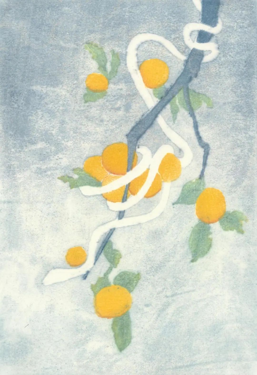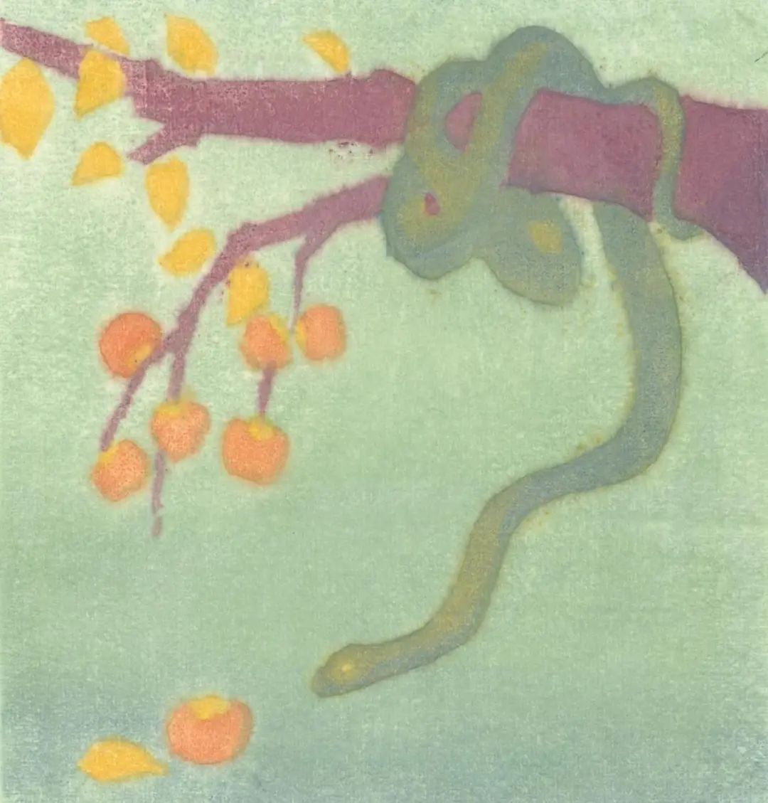 《蛇年“吉”柿》 水印木刻 孙俪源 2024