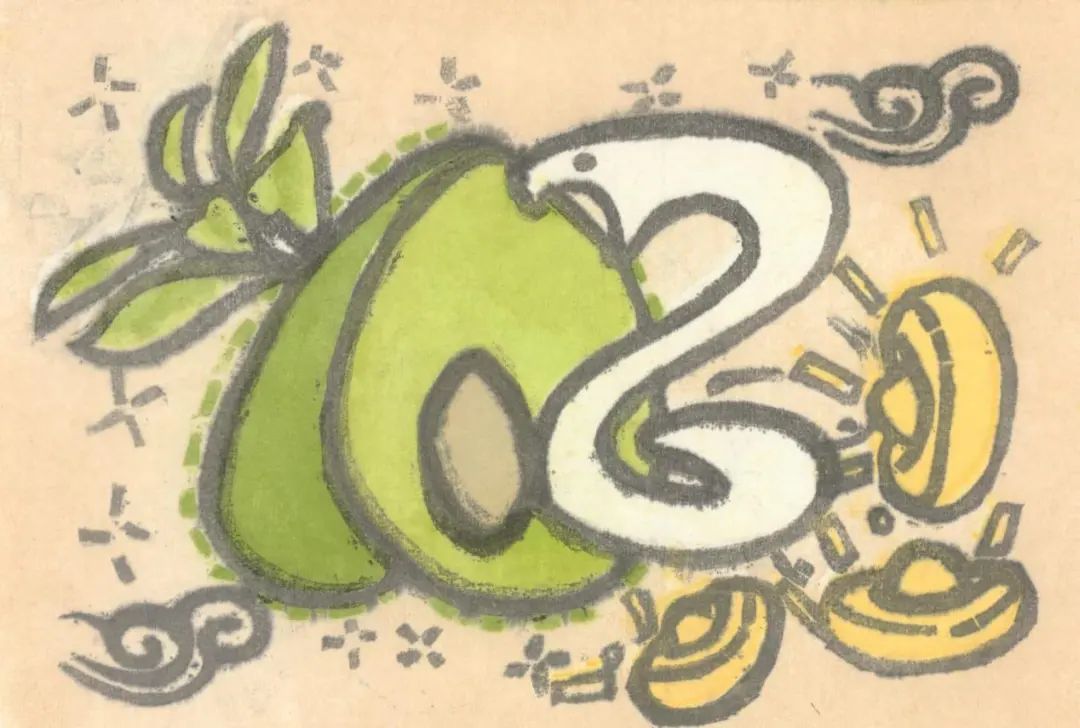 《贺年·蛇年大吉》 水印木刻 丁熙霖 2024