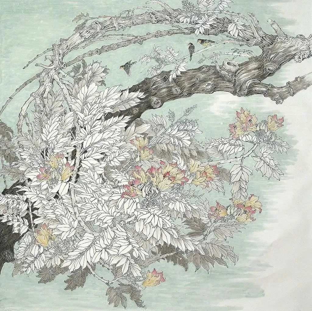 《翠色含露图》