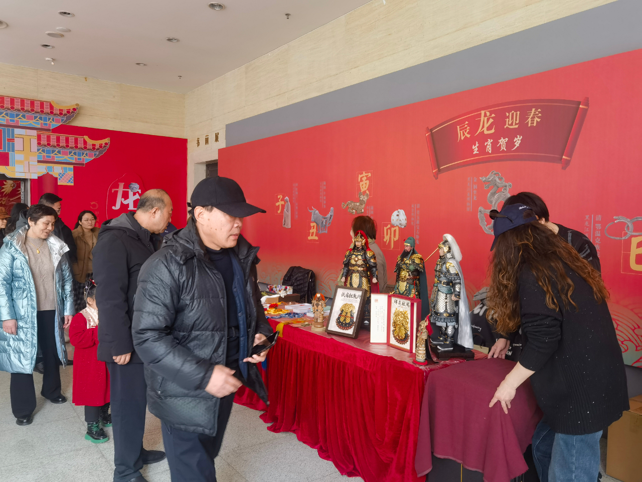 龙年新春,《龙行中国——甲辰龙年生肖文化展》在博物馆6号楼专题展厅隆重开展。镇江市民间文艺家协会精心挑选了29件(组)以“龙”为主题的民间文艺作品亮相本次展览,作品有面塑《鲤娃踏金跃龙门》、太平泥叫叫《双龙盘珠》、铜版彩画《金龙腾飞》、剪纸《龙凤呈祥金玉满堂》等。民间艺术家以传统技艺为表现方式,塑造龙形象,传递龙精神,为观众呈现中国传统生肖龙文化的魅力,送上龙行龘龘,前程朤朤的美好祝福。