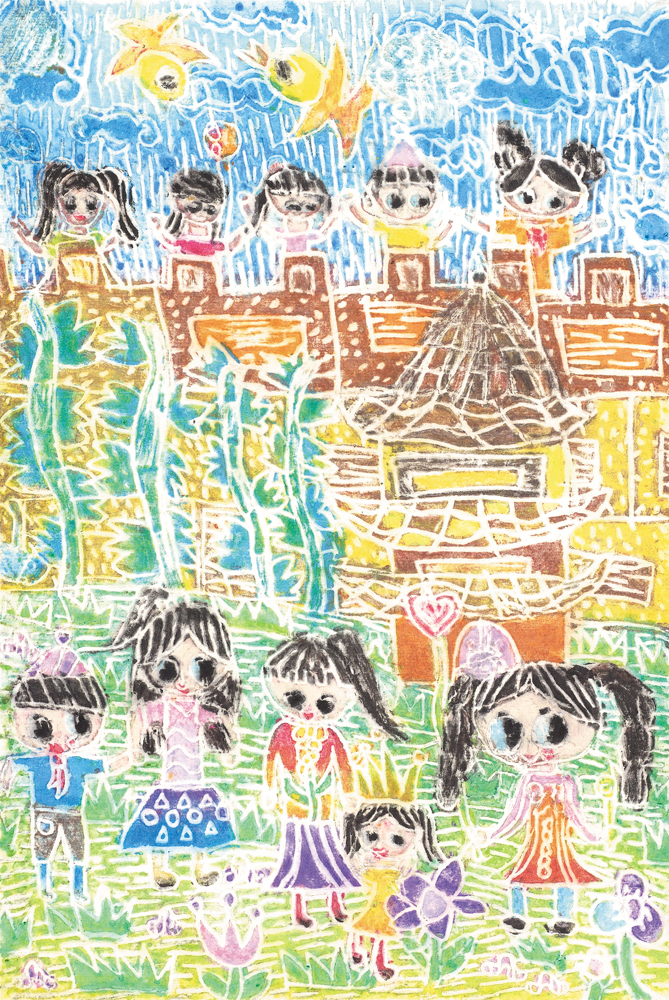 王祎然 一起去踏青 儿童画 32cm×47cm