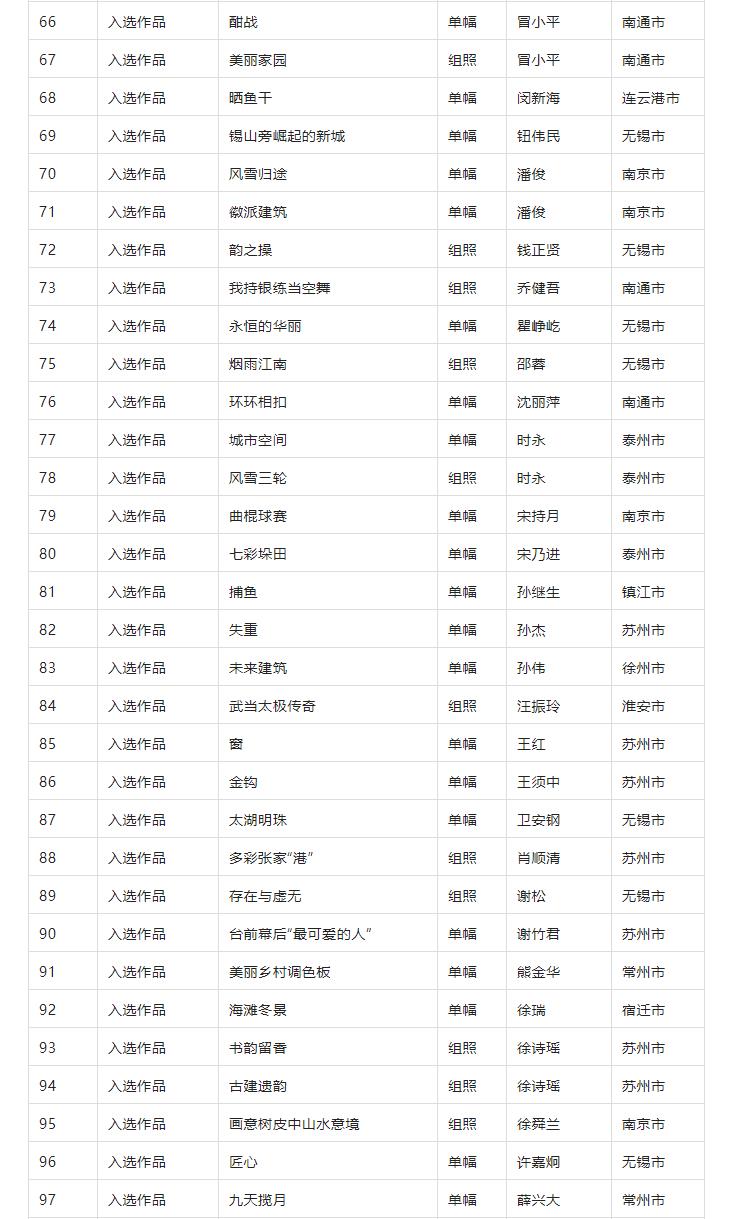 重磅 | 第24届江苏省摄影艺术展览拟入选作品公示公告