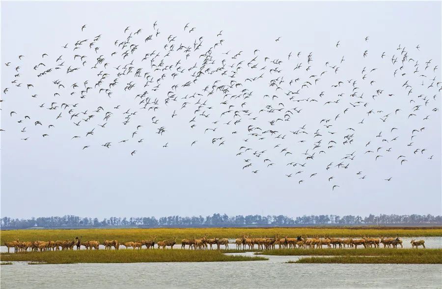 《和谐家园》 袁玉华 2020年10月 摄于盐城大丰麋鹿湿地保护区