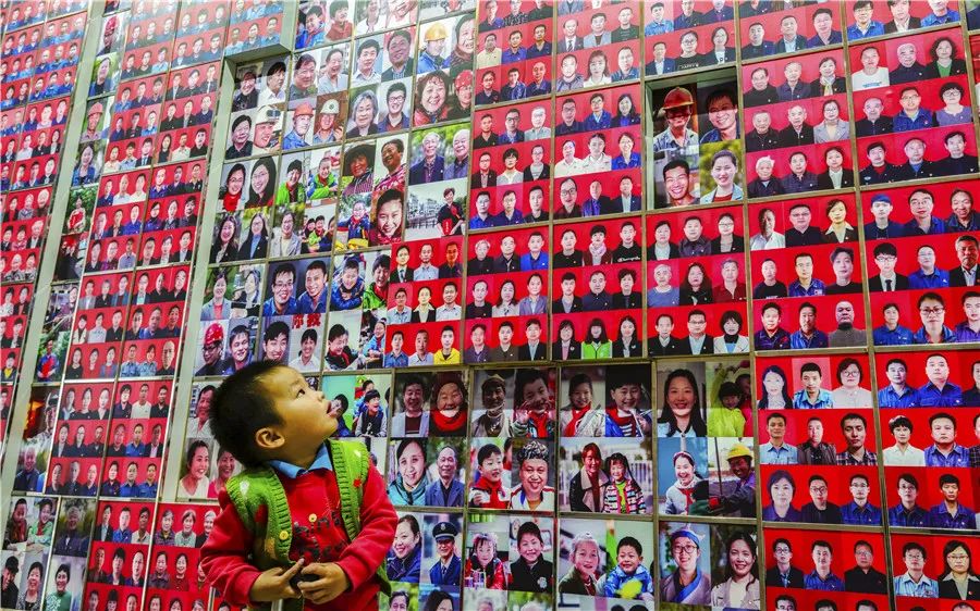 仰望 陆启辉 摄于张家港市南丰镇永联村村民议事厅内的村民图片墙