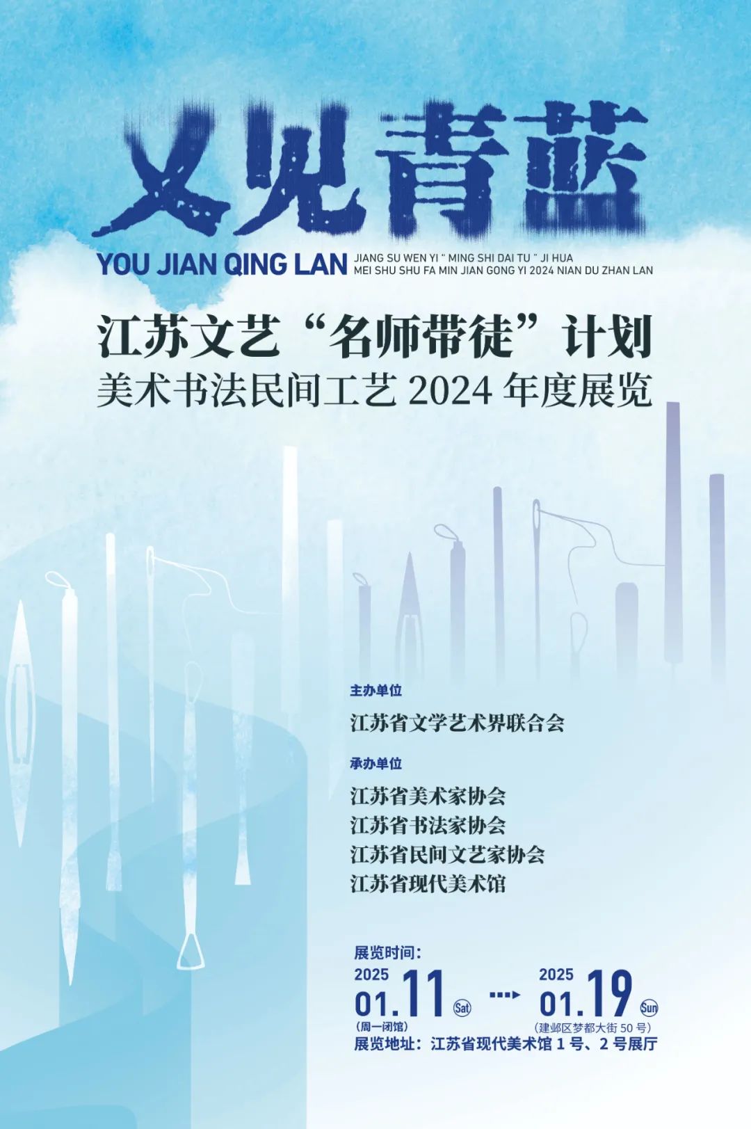 江苏文艺“名师带徒”计划第二轮2024年书法美术工艺美术作品展在这里与大家见面。过去的一年,省文联组织了集体采风、读书班等系列活动;名师结合实际不断改进授艺模式,从精神品格到艺术修养,从口传心授到同台演出,悉心传帮带;学员在导师的指导下,积极进取,奋发有为,潜心学思用。作为第二轮的第二次集中展示,本次展览取名“又见青蓝”,是对师徒结对传帮带,人才培养文艺传承,共筑青蓝相继美好景象的期许。