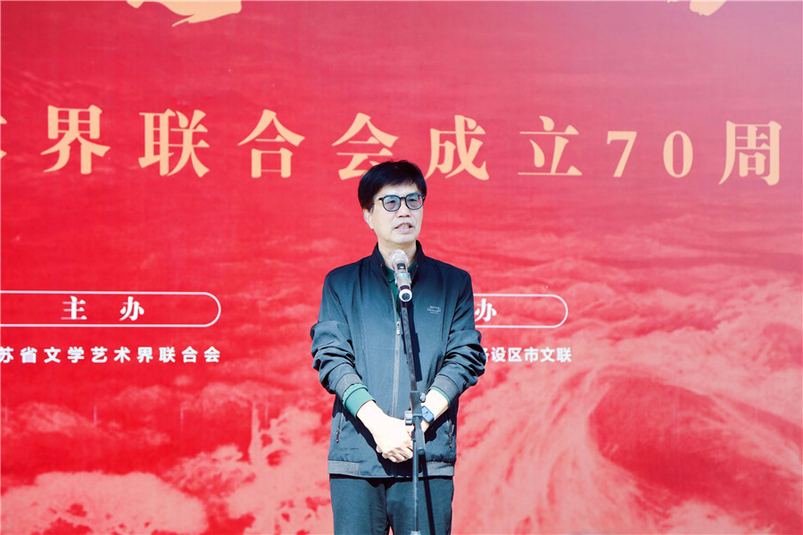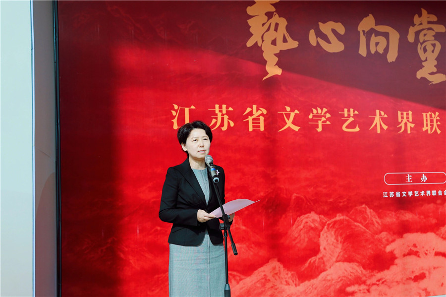 常胜梅表示,习近平总书记提出,“文艺是时代前进的号角,最能代表一个时代的风貌,最能引领一个时代的风气”。她希望能通过这次展览,感历史之脉动,扬时代之精神,温故而知新,不断激励江苏文艺家始终以习近平文化思想为根本遵循,永远听党话、跟党走,为把江苏打造成为习近平文化思想的生动实践地、中华民族现代文明建设成果的重要展示地作出新的更大贡献。