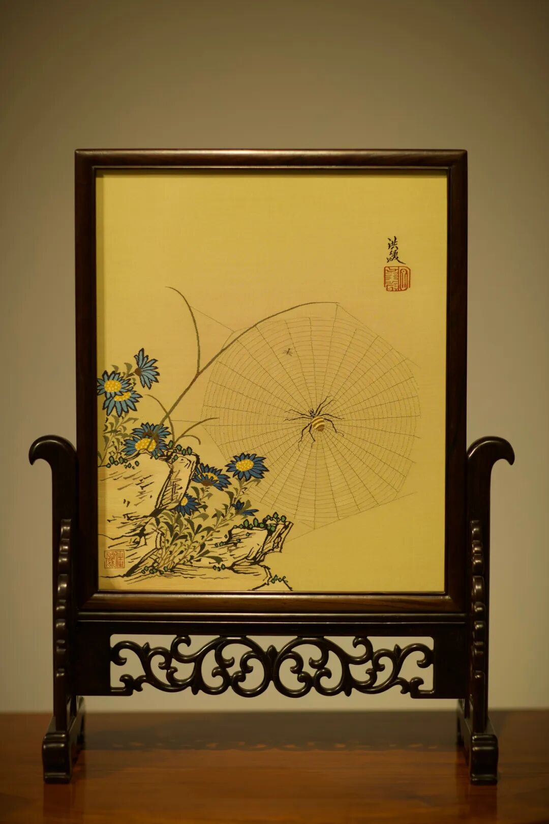 黄佳丽 缂丝《蓝菊蜘蛛图》