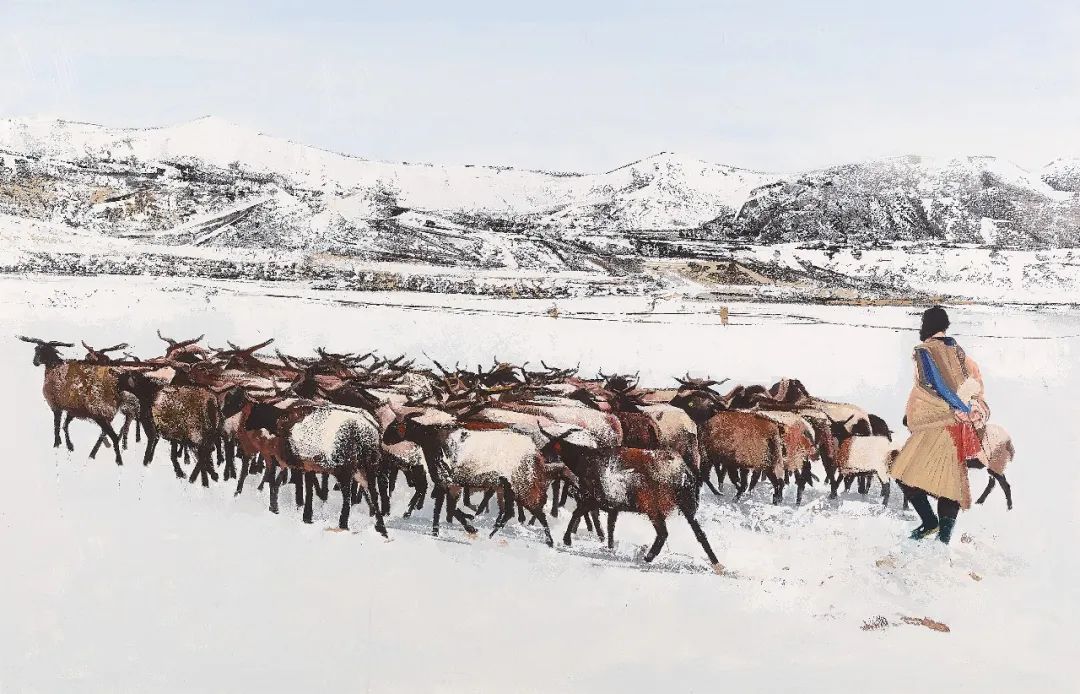 史洪生[扬州]《冬日 牧民与羊》90cm×140