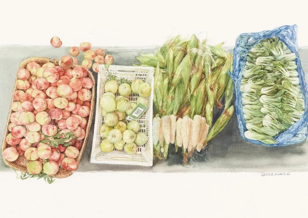 陈秀巧[盐城]《路边的菜摊》55cm×75cm