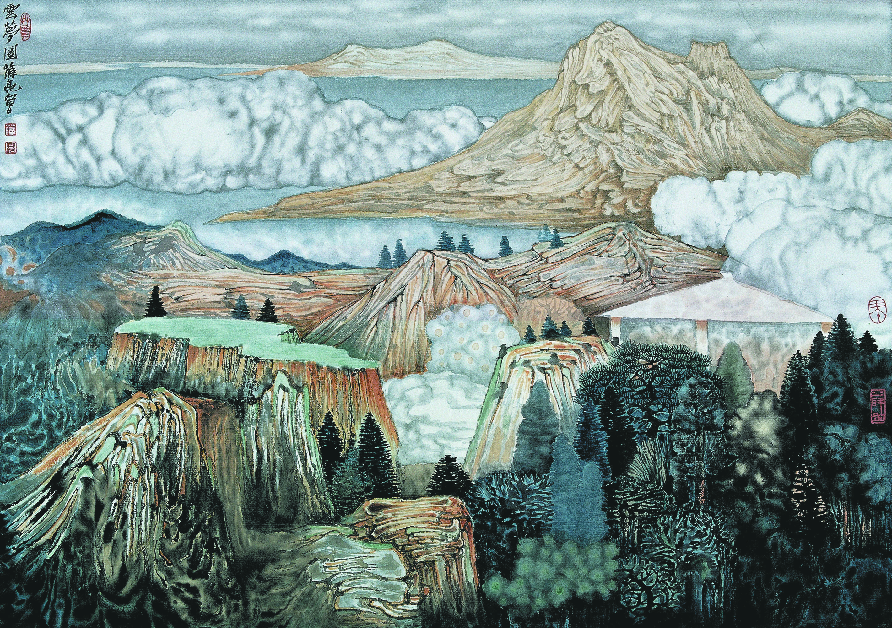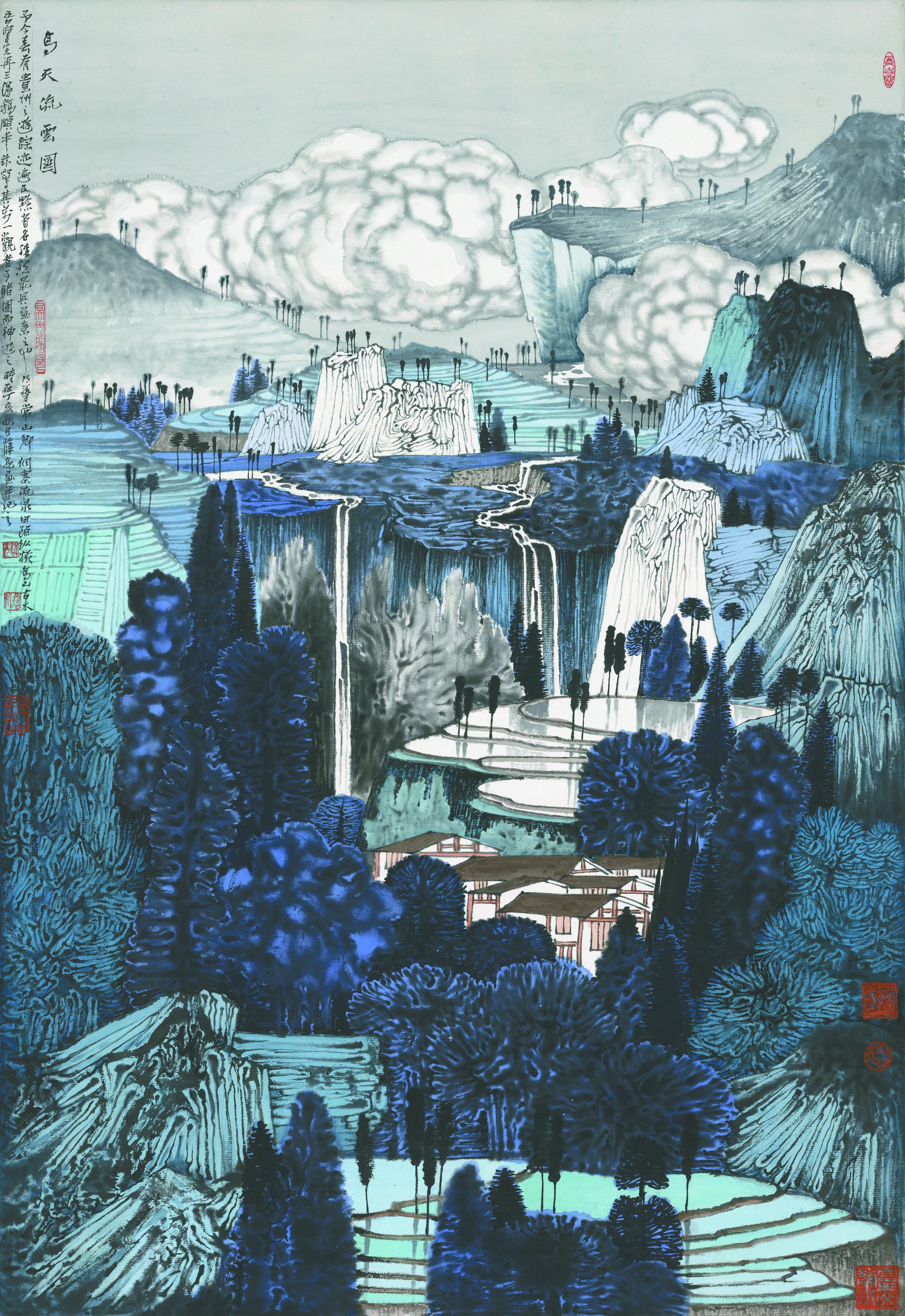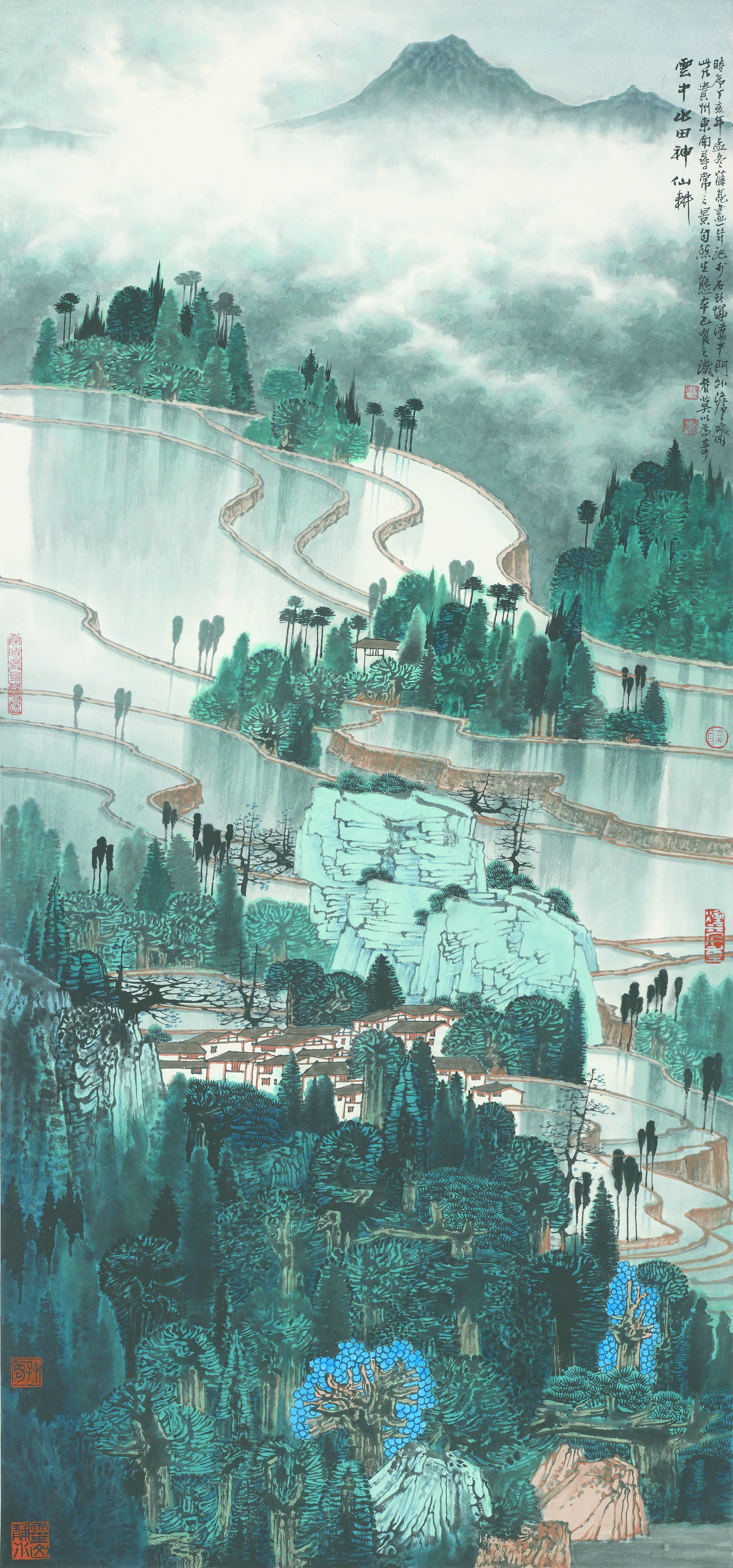 云中水田神仙耕-山水-纸本设色-48-98cm