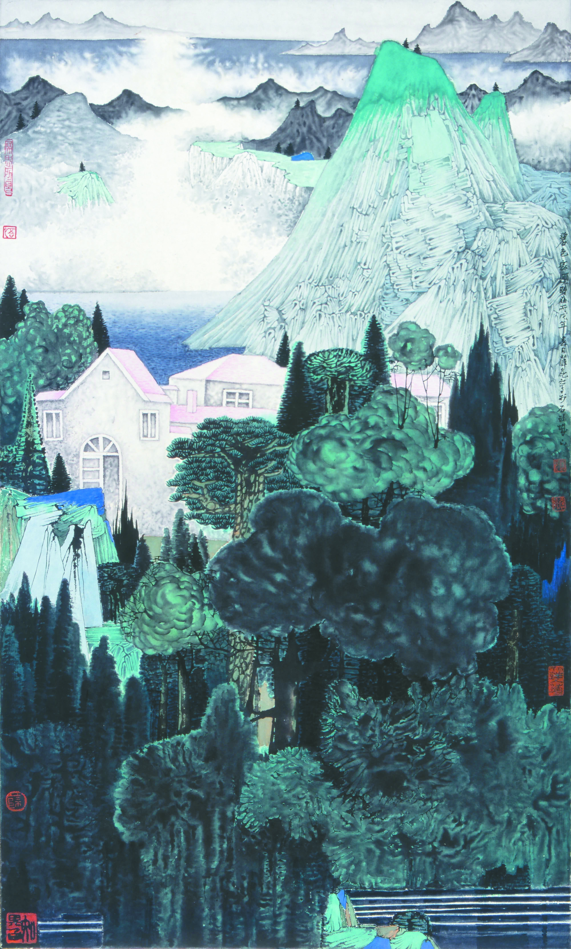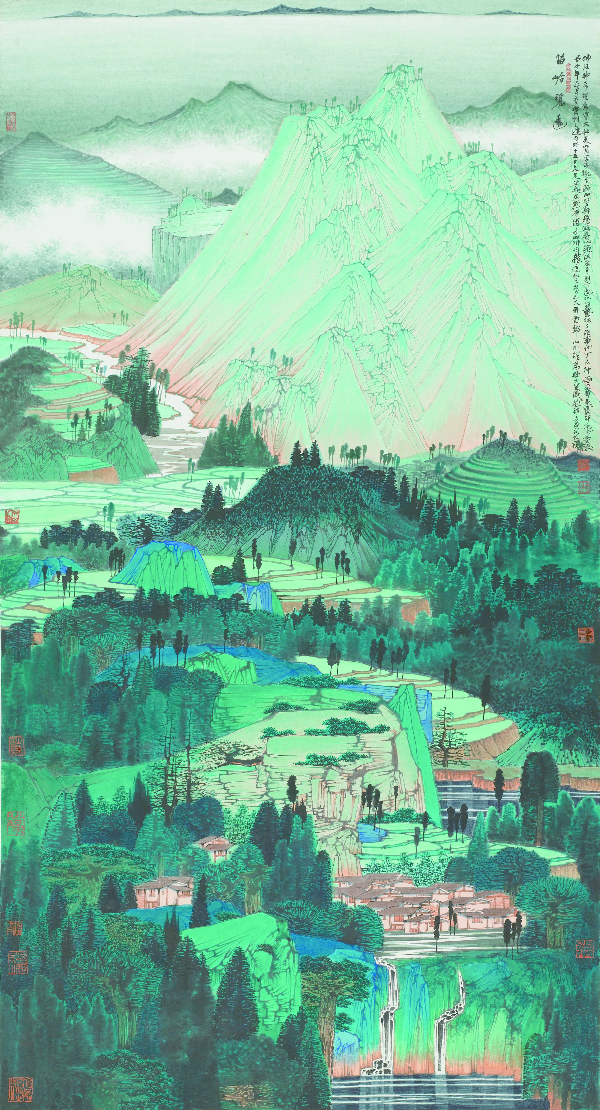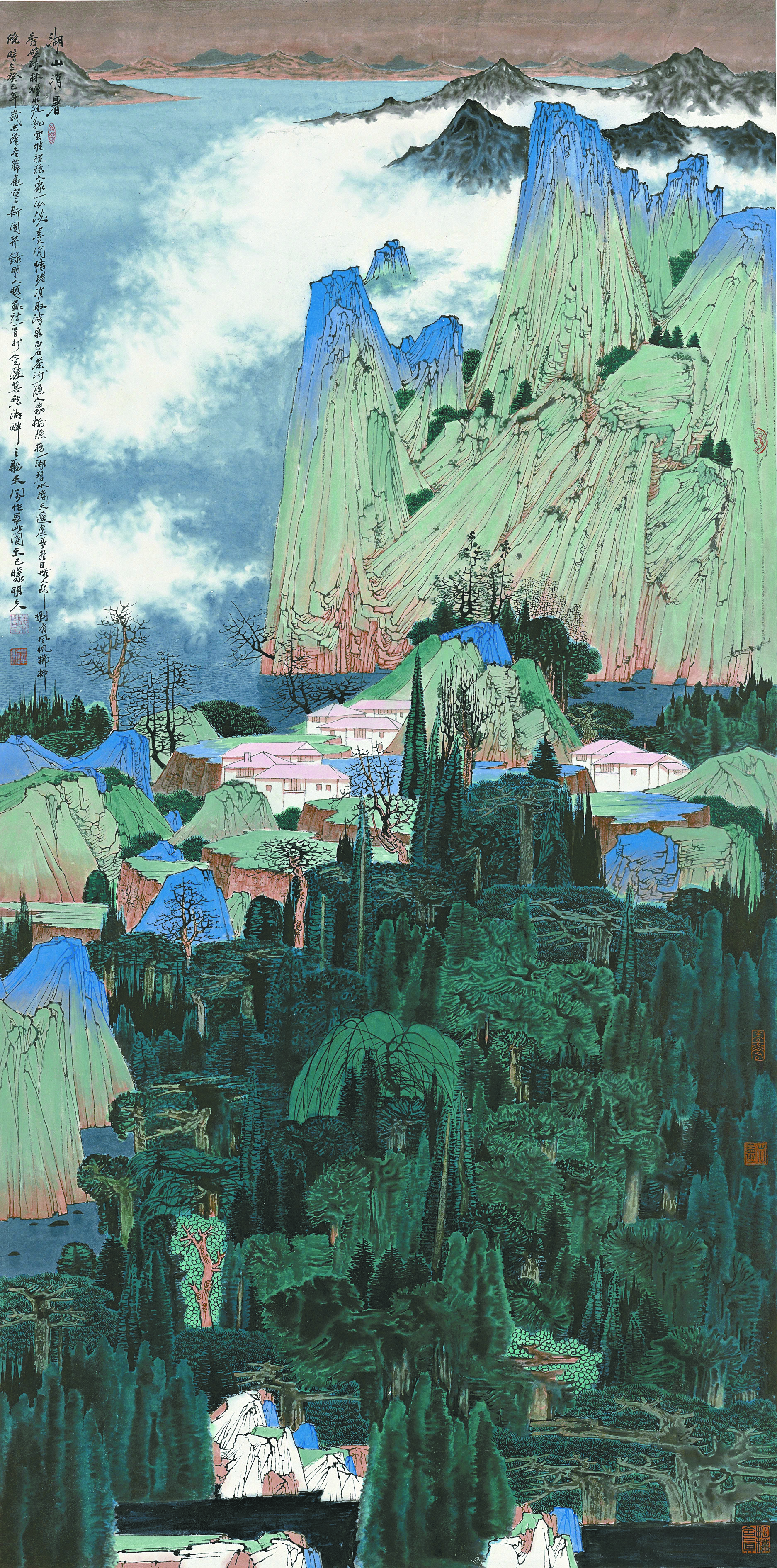 云中水田神仙耕-山水-纸本设色-48-98cm