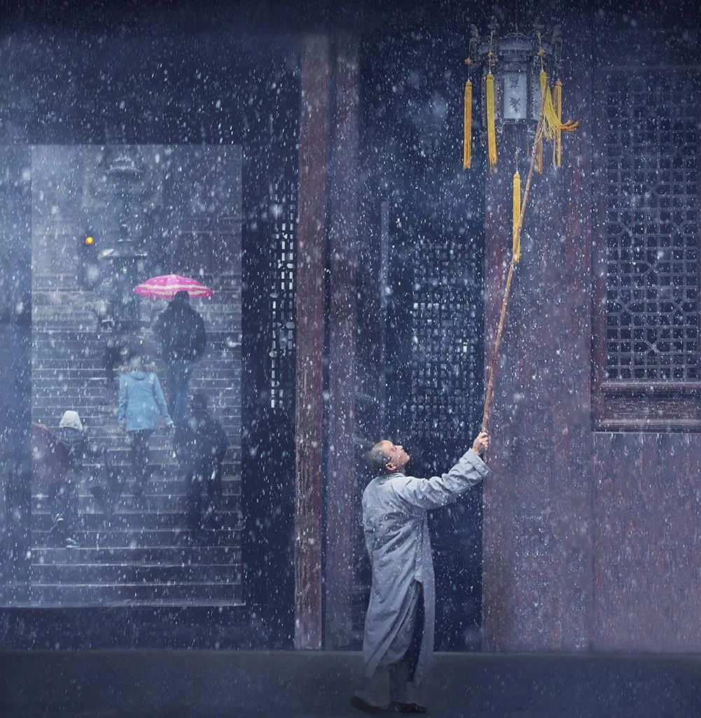 《古寺飞雪》 张富德 摄