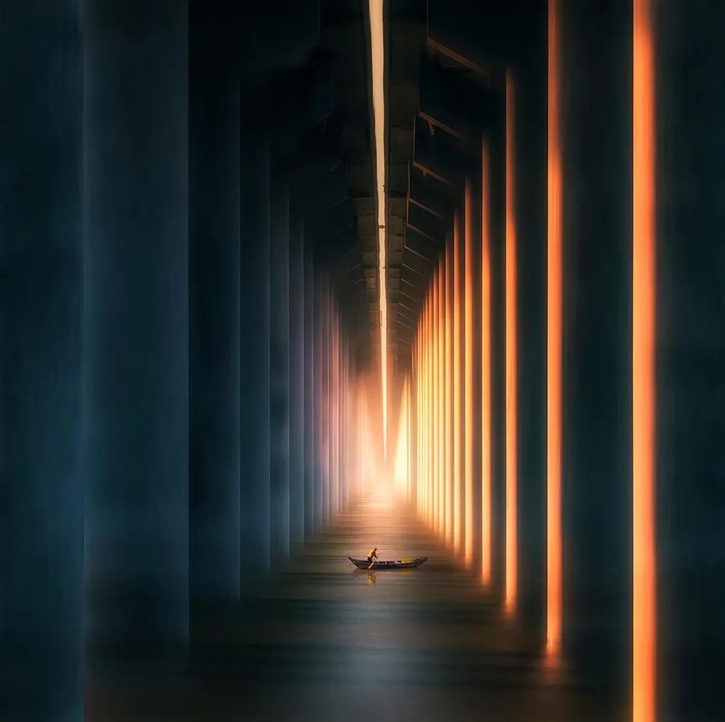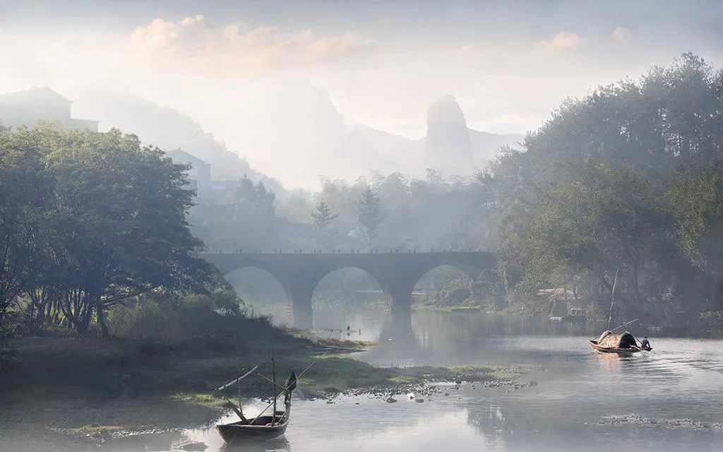 《幽桥行舟》 王冰 摄