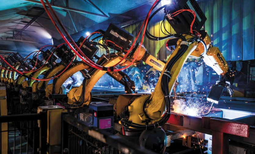 江苏太仓中集集装箱制造公司电焊机械臂的工作场景。