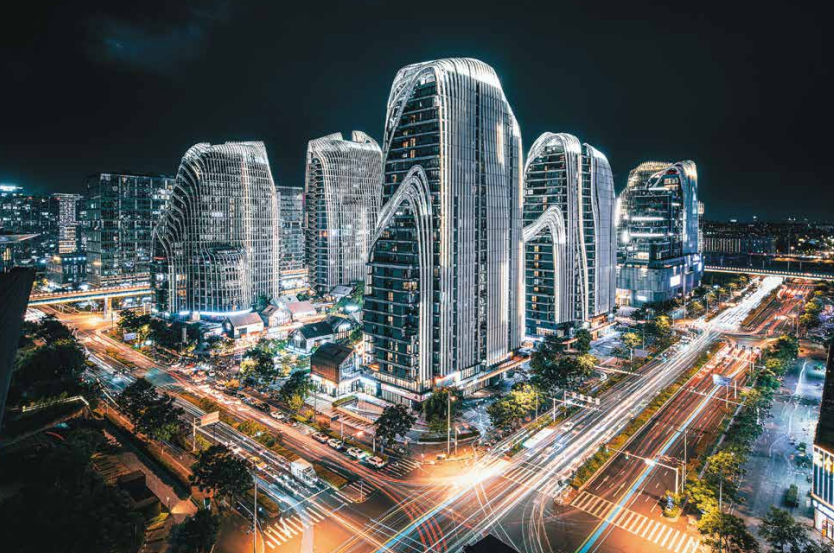 南京雨花台区的喜马拉雅设计得非常科幻,站在高楼观望仿佛在科幻世界中。