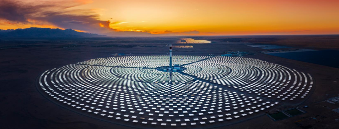 2023年10月26日摄于青海格尔木。海西格尔木50MW塔式光热电站全力发电中。青海海西多能互补集成优化示范工程作为集风电、光伏发电、光热、储能于一体的国家能源重点示范项目,填补了国内风光热储的技术空白,解决了新能源大规模并网技术难题,该工程关键调度系统AGC/AVC控制系统由南瑞集团支撑建设,有效服务清洁能源发展。