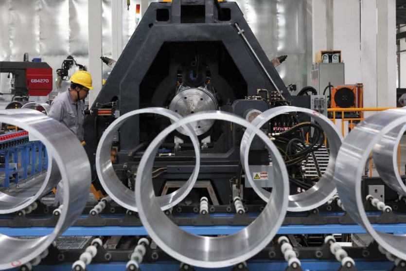 2024年5月31日,工人正在生产车载储氢器内胆。位于张家港市的江苏国富氢能技术装备股份有限公司是国内领先的氢能全产业链核心设备的研发和制造商。