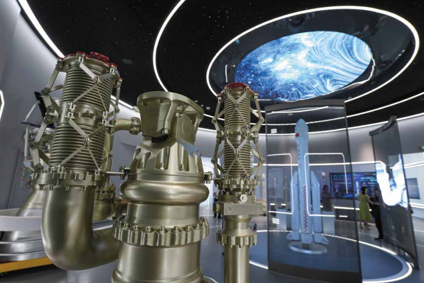 2024年9月9日,在无锡商业航天展示馆展示的火箭发动机模型。无锡近年来前瞻布局发展空天产业,构建商业火箭、商业卫星、卫星应用三个产业链。
